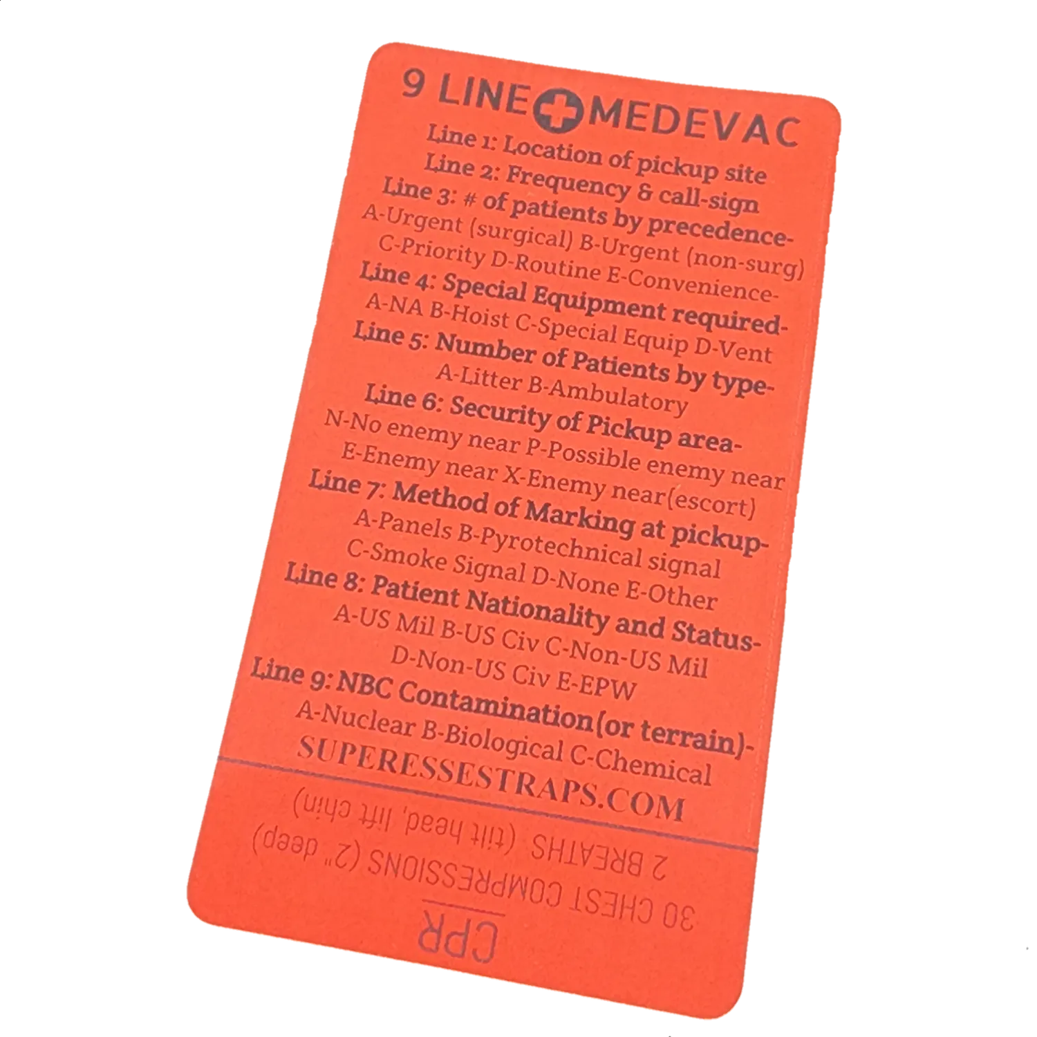When time is critical and clarity saves lives, the 9 Line Decal with CPR Refresher ensures you have the right steps ready to call in rescue or perform life-saving aid.