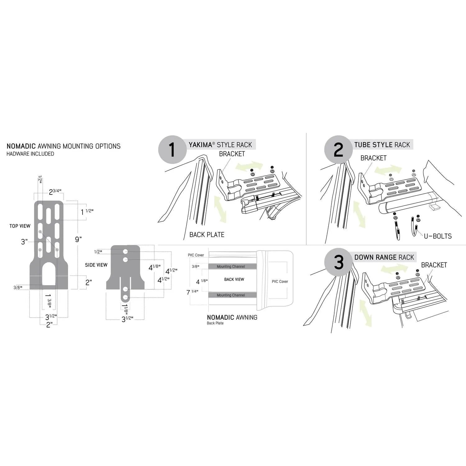 HD Nomadic 180 Degree Awning with Bracket Kit for Mid - High Roofline Vans