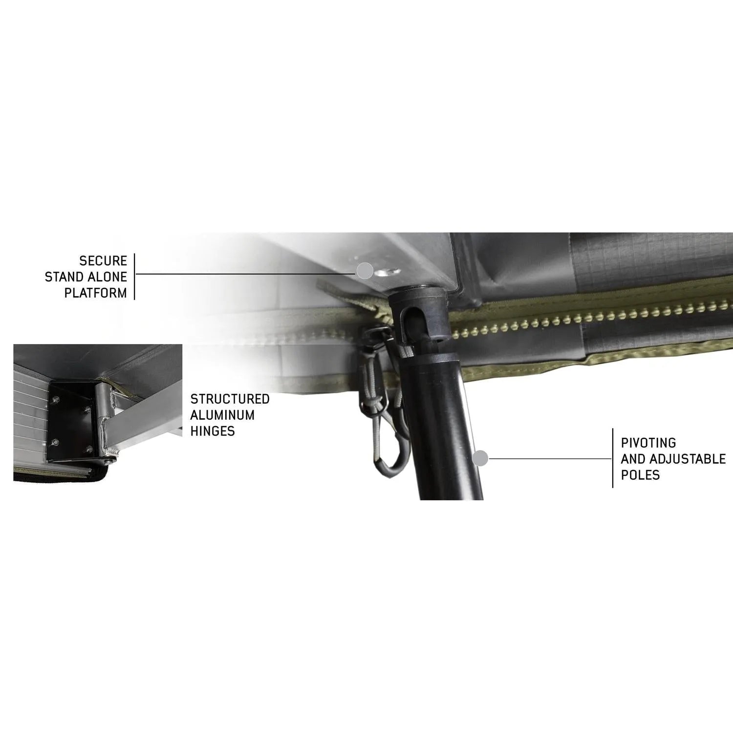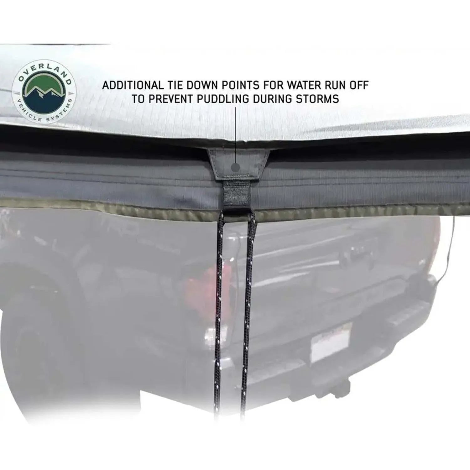 The Overland Vehicle Systems Nomadic 270LT Awning is engineered for overlanders, campers, and outdoor adventurers who need fast, reliable shelter in any environment. With 80 square feet of coverage and one-person deployment, this rugged awning sets up in minutes and packs away into a heavy-duty PVC cover for trail-ready storage. Built from 280G ripstop poly-cotton with heat-sealed seams, boxed aluminum rafters, and reinforced oversized hinges, it delivers dependable protection from sun, rain, and wind wherever the road takes you.