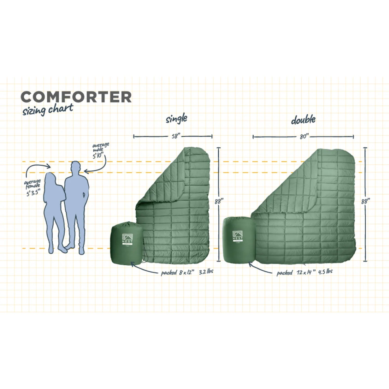 The HEST Comforter delivers the warmth and comfort of your home bed in an outdoor-ready design built for tents, vans, and cabins. Featuring 100% recycled polyester fill and HEST’s exclusive Cinch & Tuck Footbox, it eliminates the constraints of a sleeping bag while offering smarter temperature control and packable performance for any adventure.