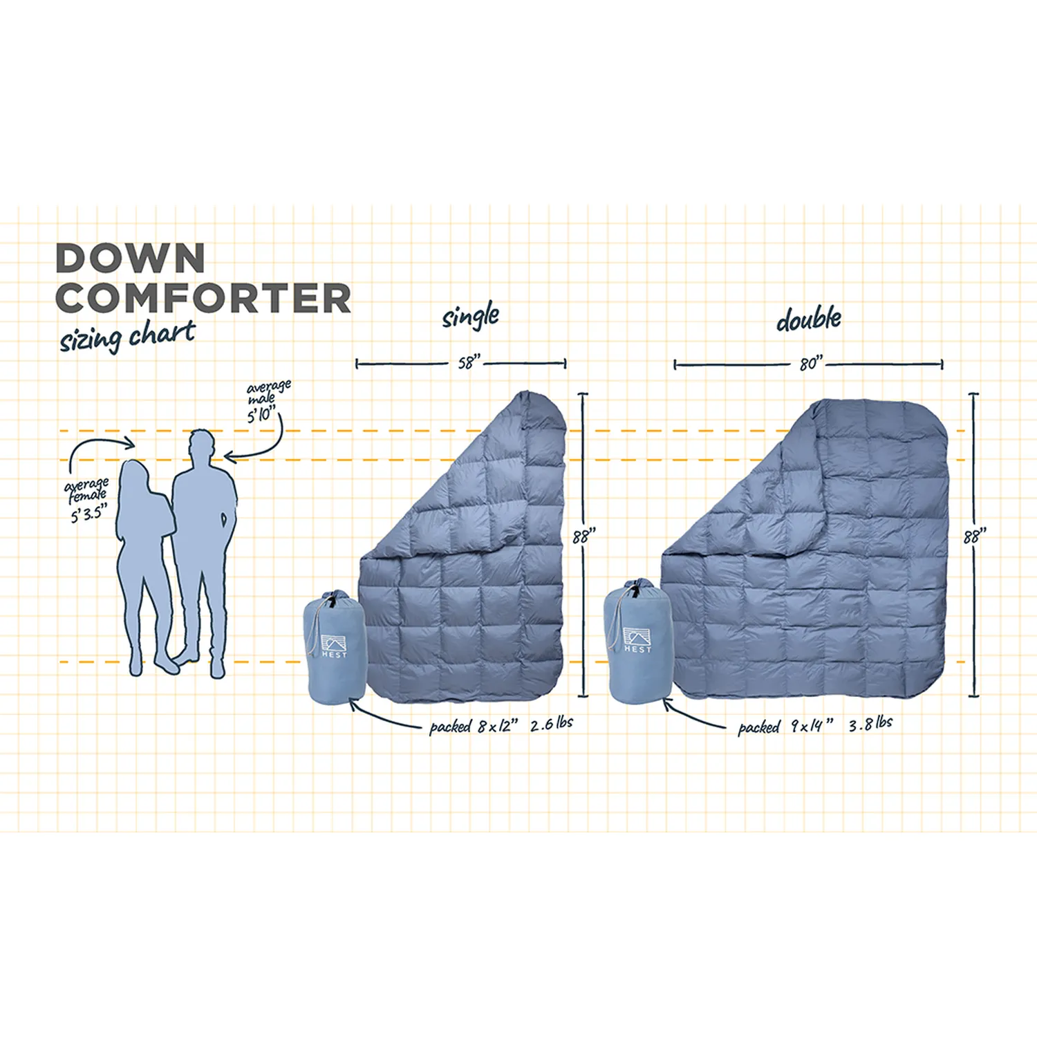 Leave the restrictive sleeping bag behind—pack the HEST Down Comforter and get the warmth, freedom, and durability you need for serious outdoor rest.