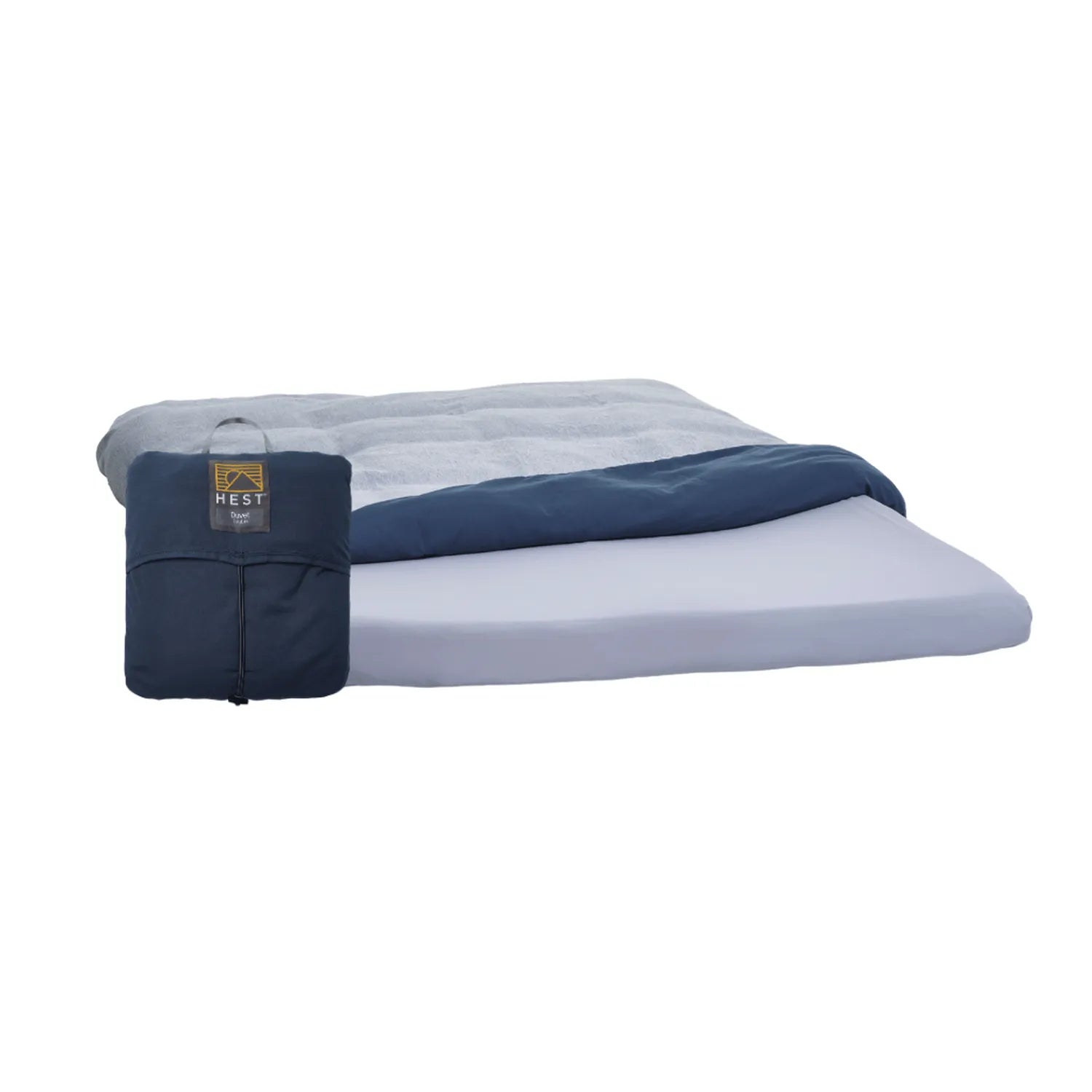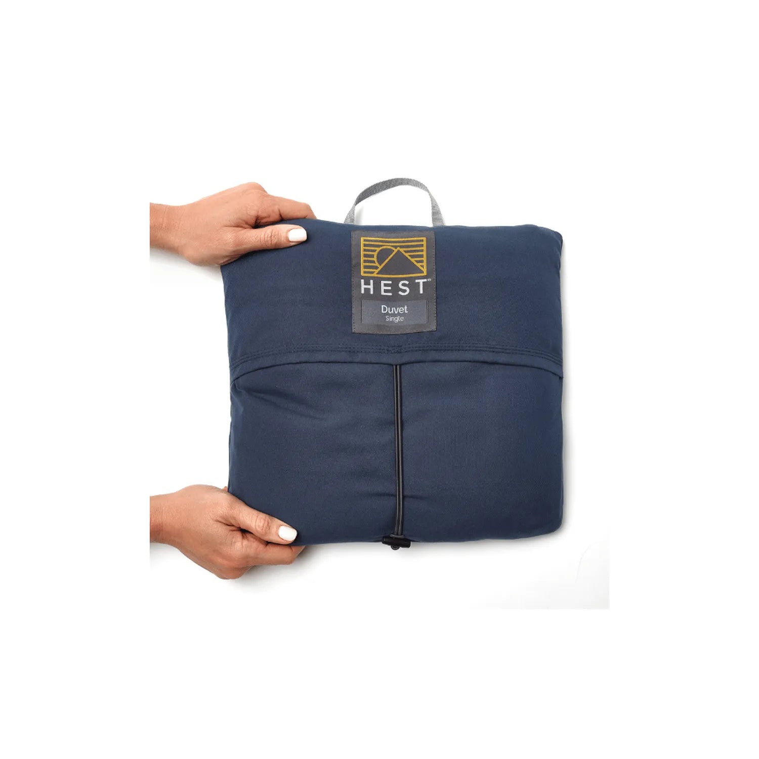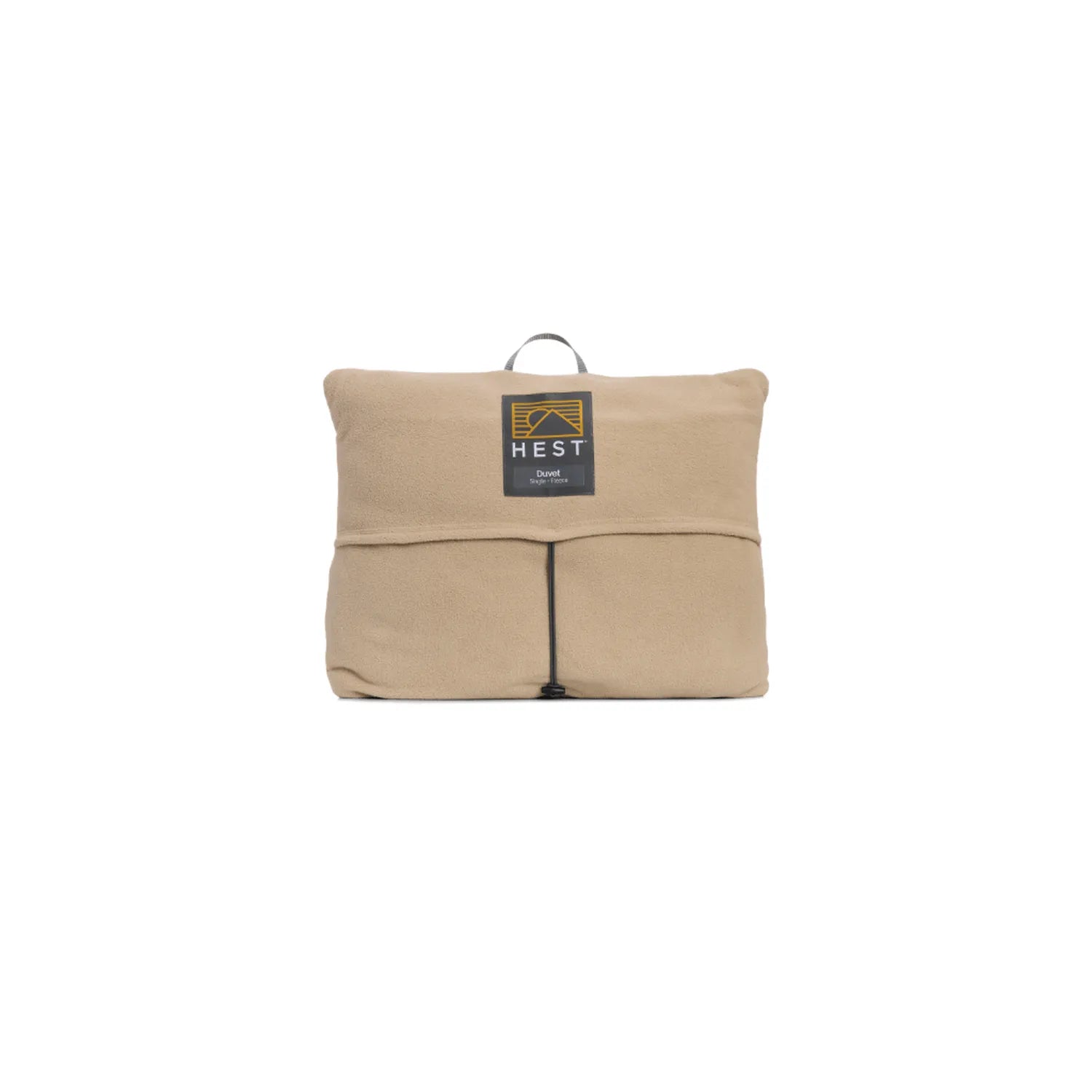The HEST Duvet is the perfect companion for your HEST Comforter, designed to enhance your comforter’s durability, longevity and comfort. . Extend the life of your HEST comforter with this washable, outdoor ready duvet featuring a soft yet durable fabric. The duvet enhances your outdoor sleep setup with an extra layer of home-like comforter, luxury and convenience that turns any camping trip into a cozy retreat. Easy snap closure to access the comforter’s cinch and tuck footbox or quickly remove from your comforter and machine wash for your next adventure. Duvet tucks into an integrated pocket for easy transport and use as a pillow when not on your comforter.