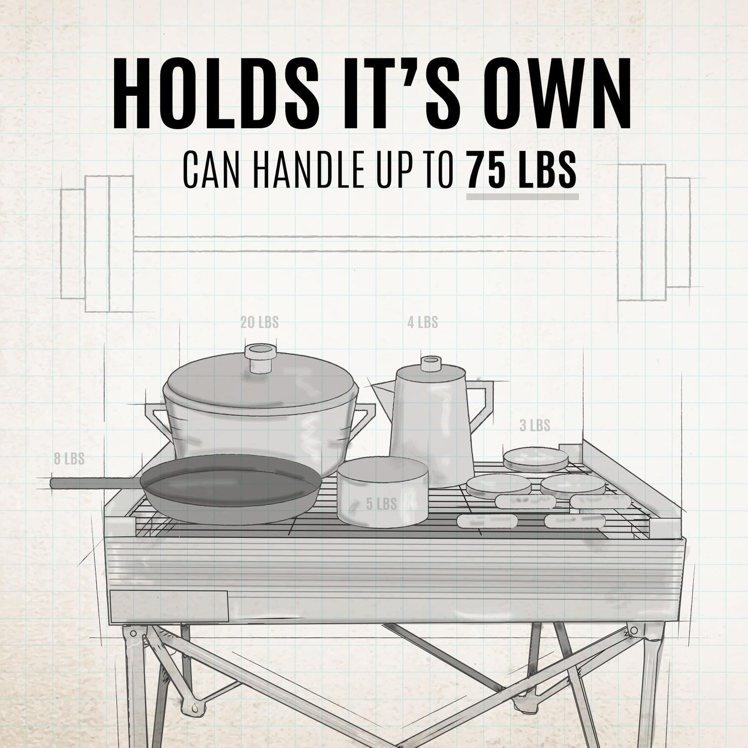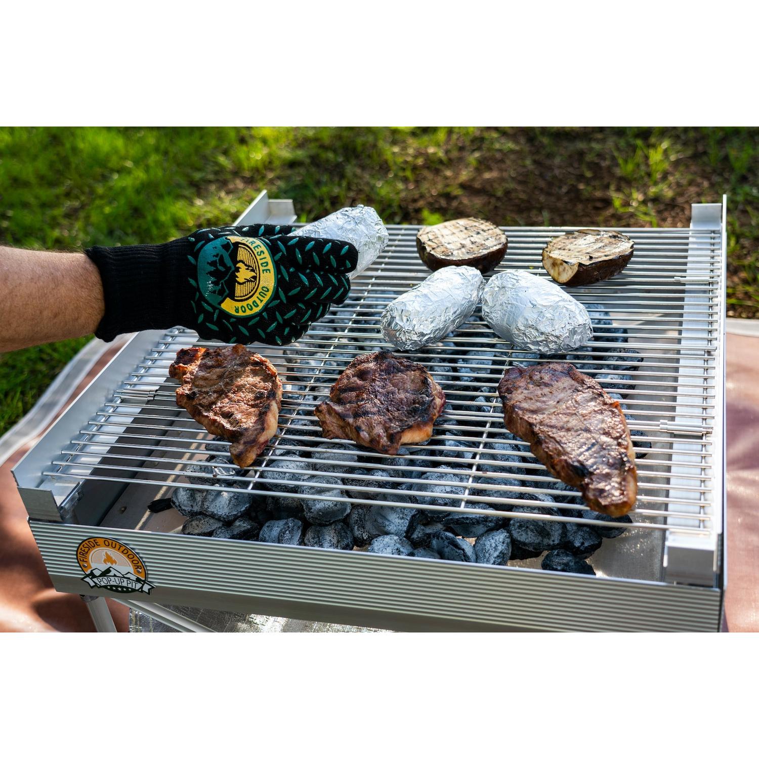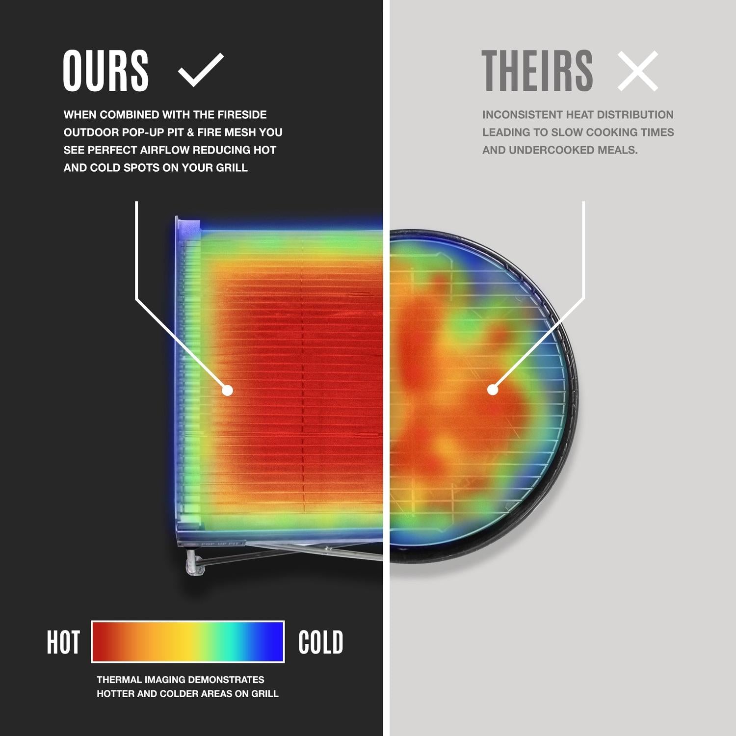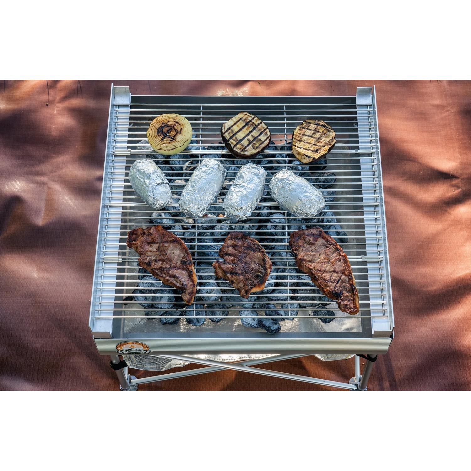 Quickly and easily convert your Pop-Up Fire Pit to an outdoor grill with the Grill Grate Attachment. 304 stainless with a folding design these grill grates can handle anything you throw at them. Load up burgers, pots, and even dutch ovens for cooking versatility.