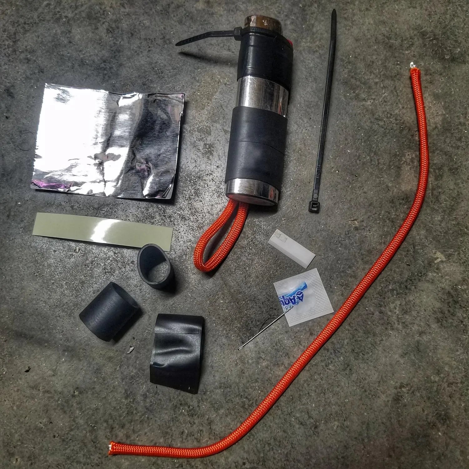 Survival Kit Lighter - Fire Starter outfitted with supplies.
