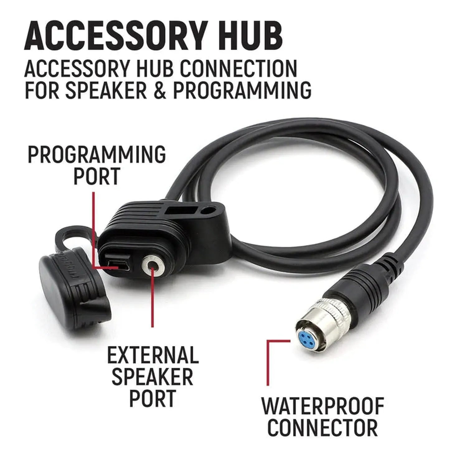 Accessory Hub: 3.5 mm speaker out, programming cable port