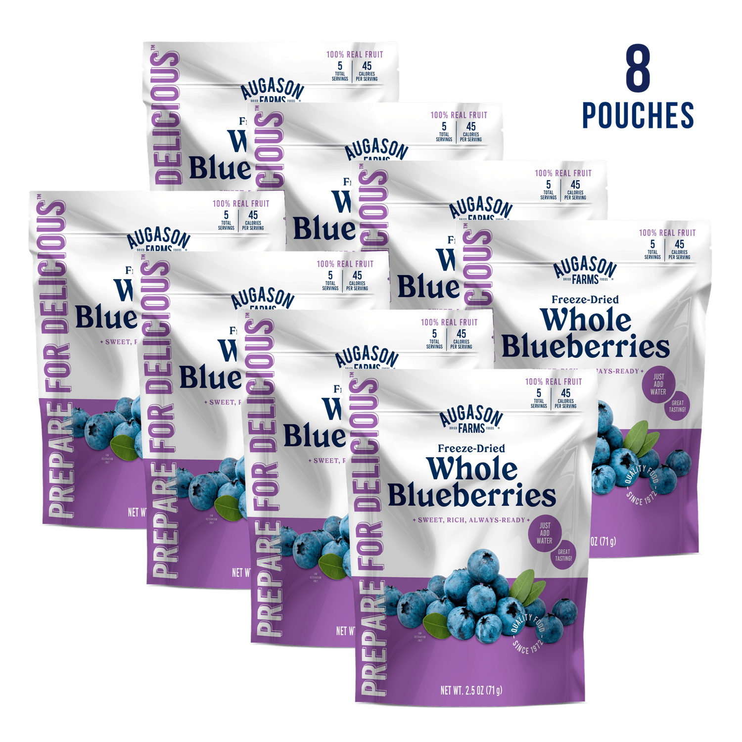 Freeze Dried Whole Blueberries Pouch, 5 Servings: 8 Pack