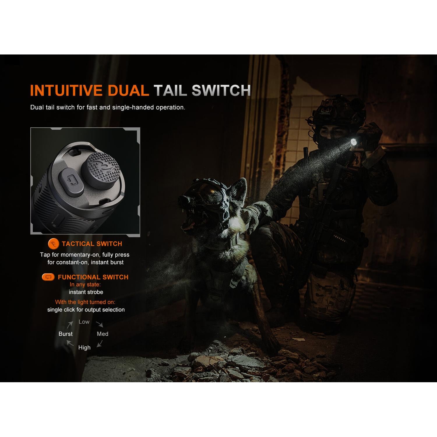 Dual Tail Switch Controls – Instant access to Burst and Strobe for rapid tactical response