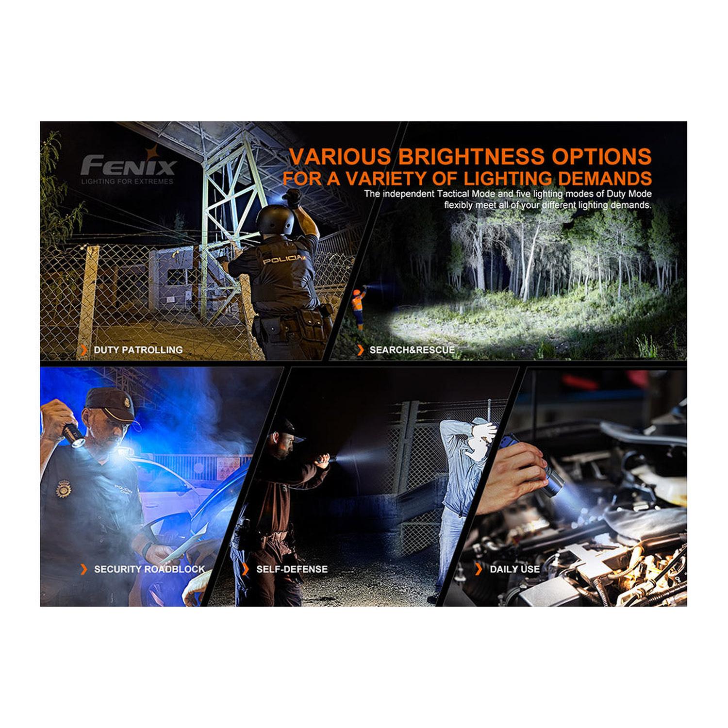 The Fenix TK35UE V2.0 is a top-tier flashlight designed to provide up to 5000 lumens of illumination with a maximum throw distance of over 1,300 ft (400 meters). Utilizing a mechanical toggle switch, users can switch between Tactical, Duty, and Lockout modes for quick responses. Additional features such as the Instant Strobe, Lockout function, and flat body design make this device ideal for a variety of lighting needs. It is powered by two 18650 batteries (*batteries not included*).