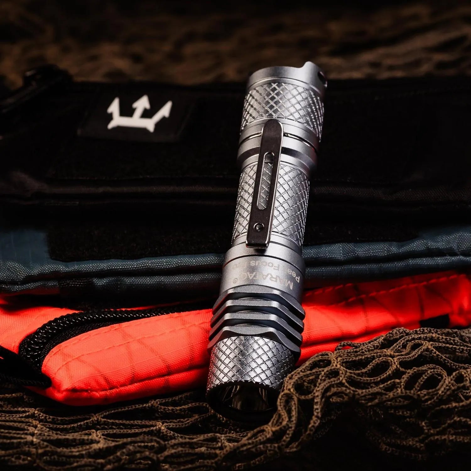 The Maratac® Peak Focus Pro delivers 1000 lumens of focused illumination in a lightweight, compact form factor designed for both everyday carry and field deployment. With a beam distance of 675 feet (205 m) and rugged construction, it’s equally at home in a survival kit, duty pouch, or hiking pack.