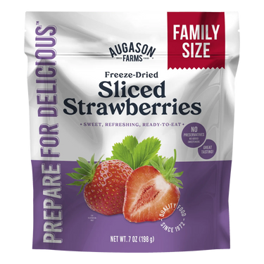 Freeze-Dried Sliced Strawberries are packed with Vitamin C and can be enjoyed as a snack right out of the can or reconstituted with water to use in desserts like strawberry shortcakes, milkshakes, and tortes.