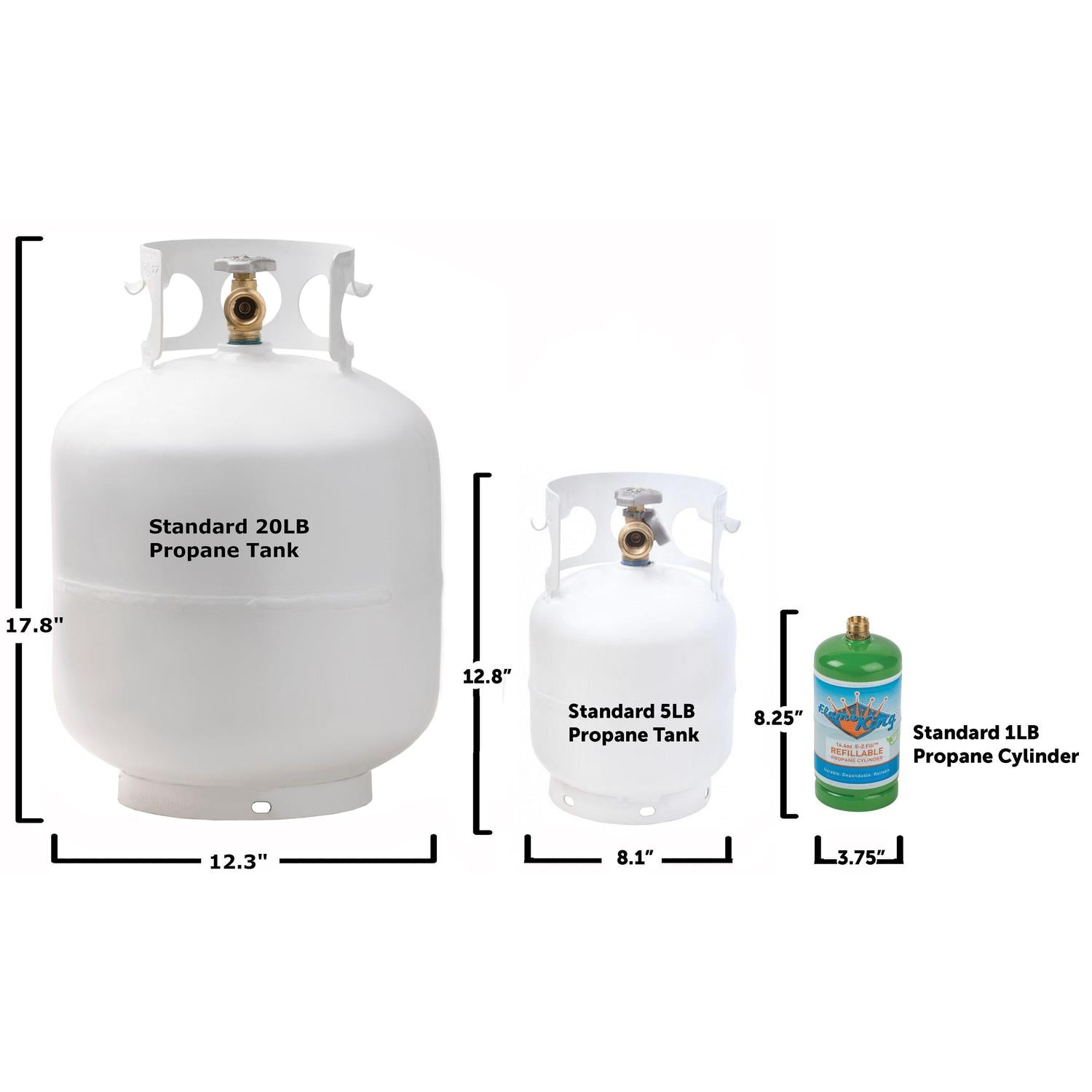 • Capacity: 1 gallon (5 lb propane) – arrives empty