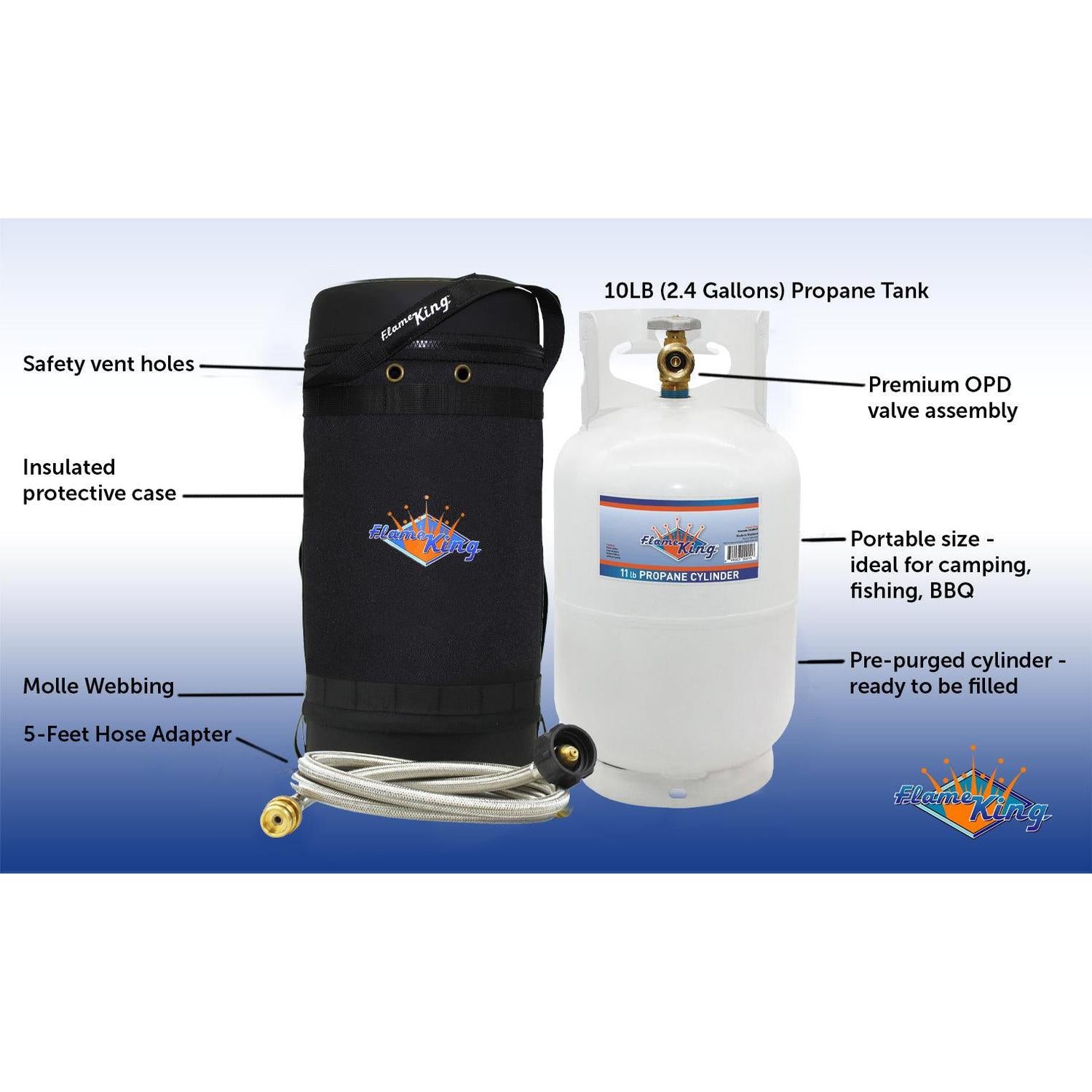 Flame King 10 lb Propane Tank Bundle with Gas Hauler Case & Steel Braided Hose