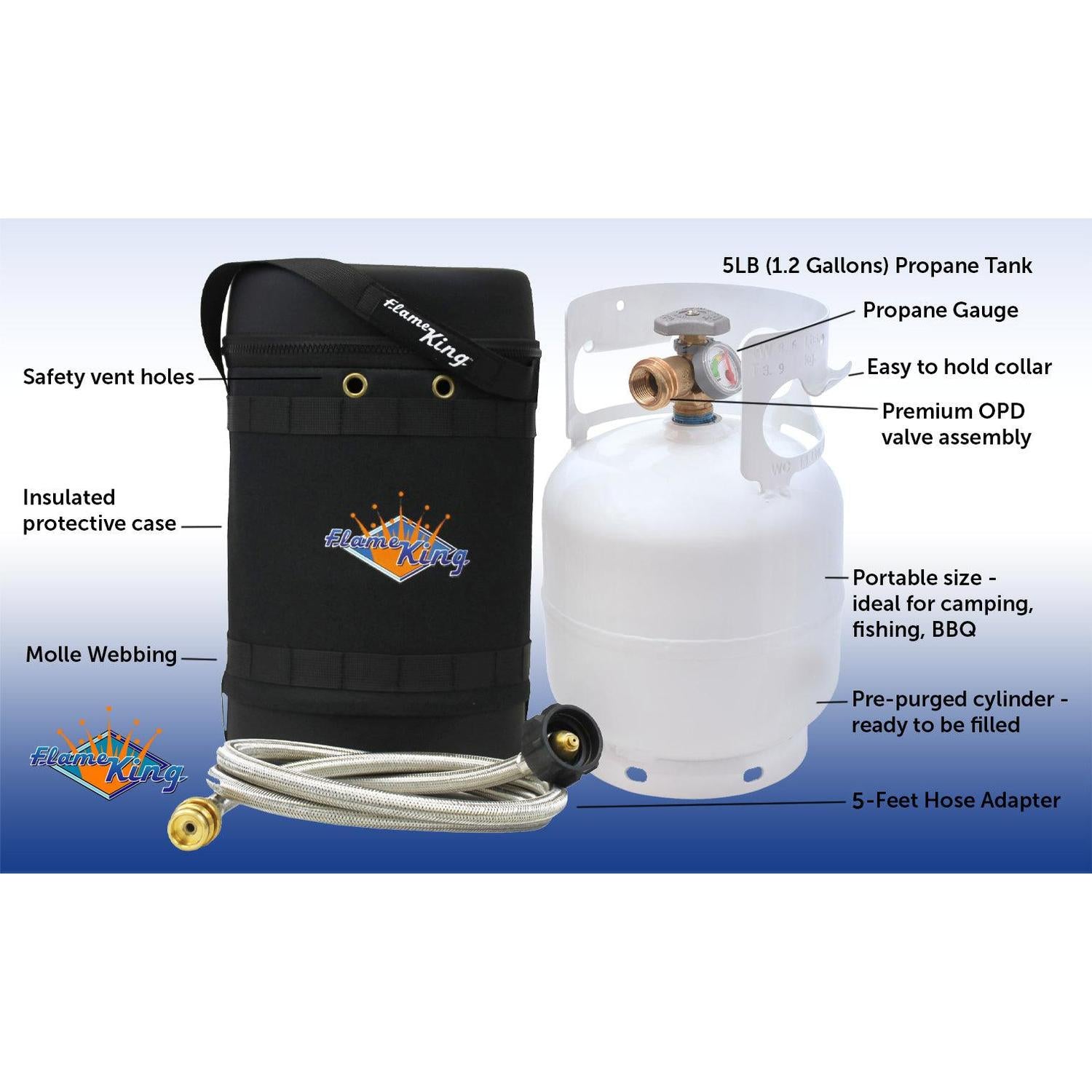 Flame King Propane Gas Hauler Kit 5lb Gauge Propane Tank, Adapter Hose and Insulated Protective Carry Case
