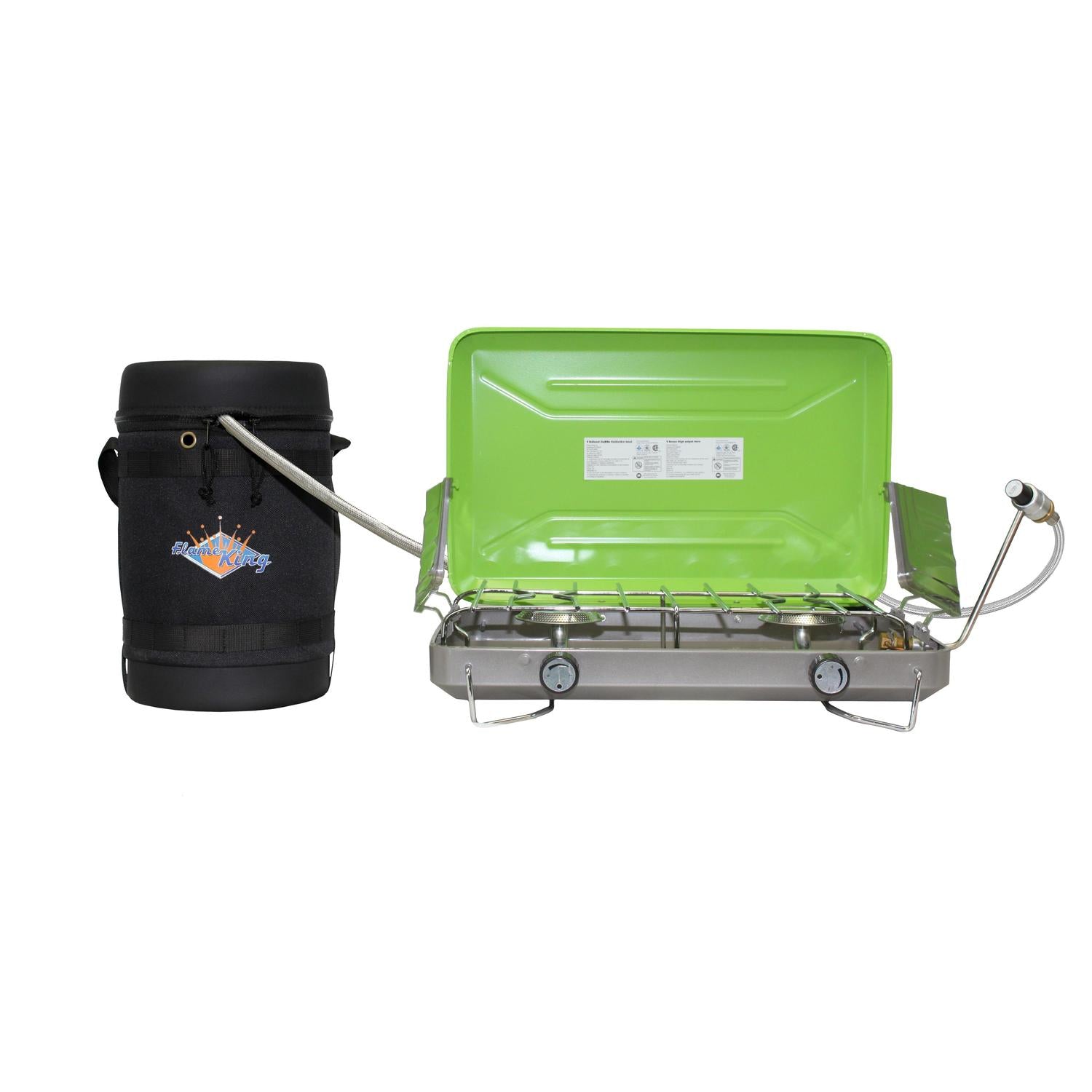 The Flame King GH5-SSH-5LBG bundle includes a 5 lb refillable propane tank with built-in gauge, a 5 ft steel braided adapter hose, and the Flame King Gas Hauler insulated protective case. Designed for portability and safety, this kit keeps your fuel secure and your appliances powered whether you’re camping, fishing, RVing, or tailgating.