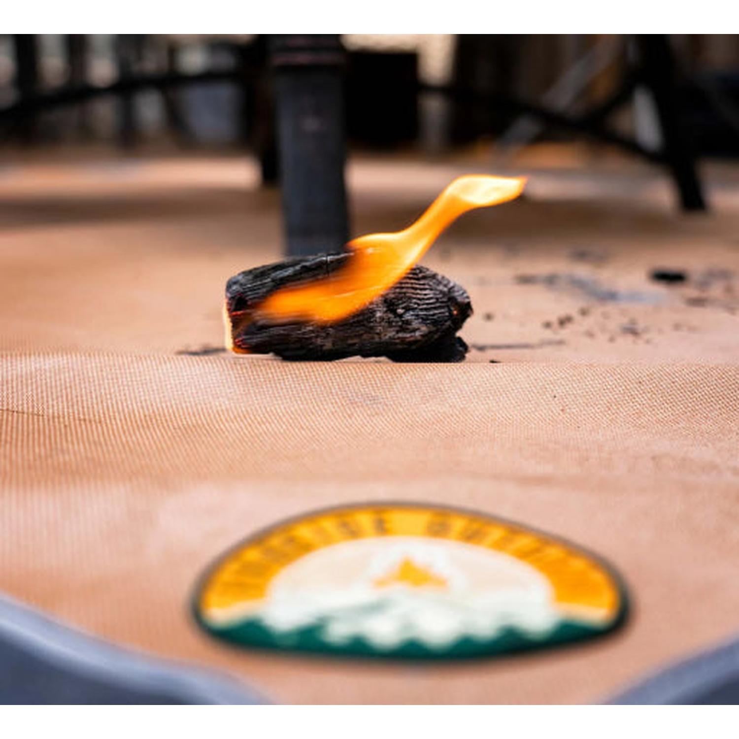 The Fireside Outdoor 60 in X 67 in Ground Ember Mat provides a protective barrier from hot popping embers from burning the ground or wood deck or patio around your fire pit or charcoal grill. Made from a thermal weave fiber and coated on both sides with food-grade high-temperature silicone to ensure years of reliable use. The Ground Ember Mat can also be used under gas barbeque grills and smokers to prevent dripping grease and spills from damaging the patio. The Ember Mat cleans up easily with mild dish soap and then rinse with fresh water from your garden hose. The Ember Mat folds up like a picnic blanket for easy transporting or storage, and it back by the Fireside Outdoor Limited 1-Year Warranty.