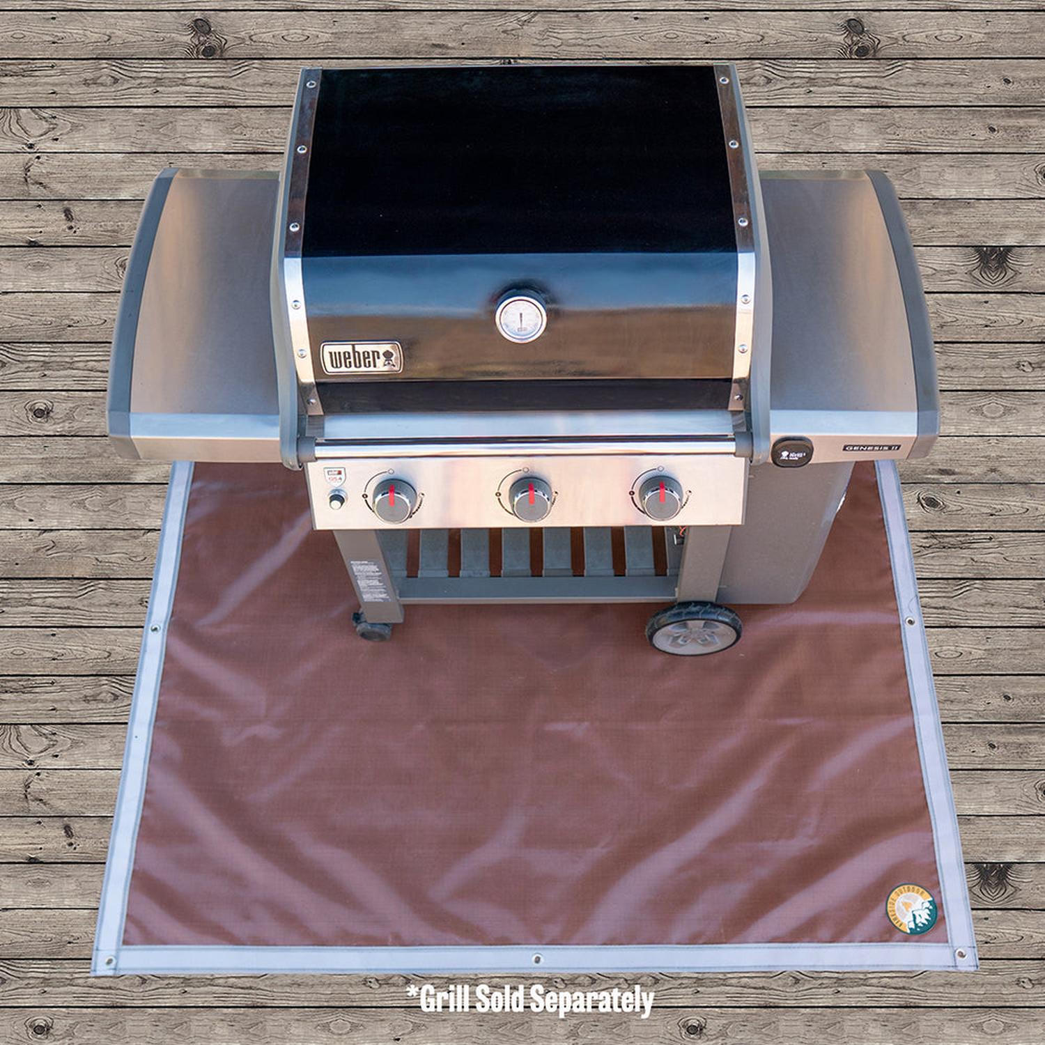 - Provides a protective barrier from hot embers and dripping grease from damaging or staining wood decks, patios, and ground surface.