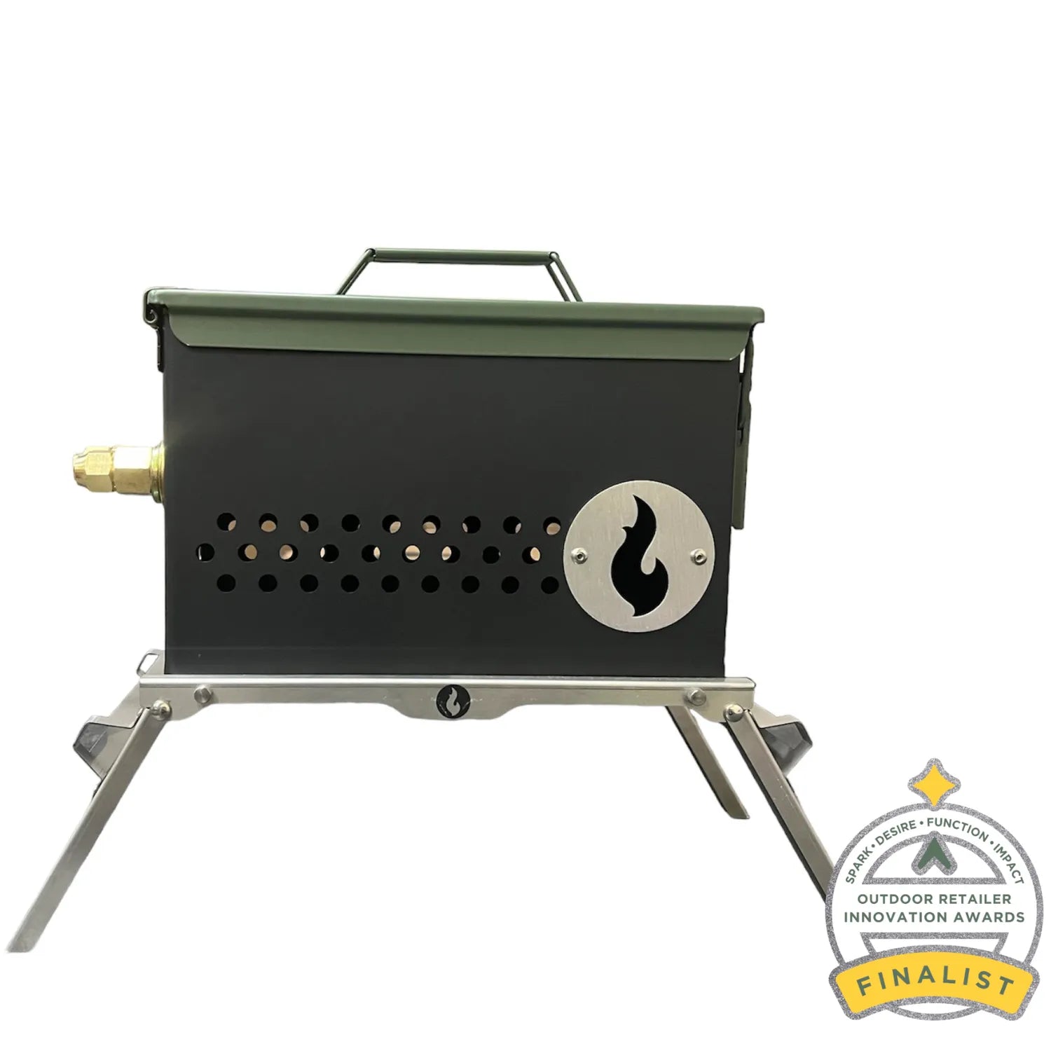 The Original LavaBox Combo combines fire, cooking, and carry into one rugged setup. Built around the ammo-can style LavaBox with the Trident Dual-Burner System, this kit delivers serious heat in a compact, field-ready package. The Over/Under Grill Thingy adds grilling versatility and a stand, while the BugOut Bag hauls the entire system with efficiency and room for extras.