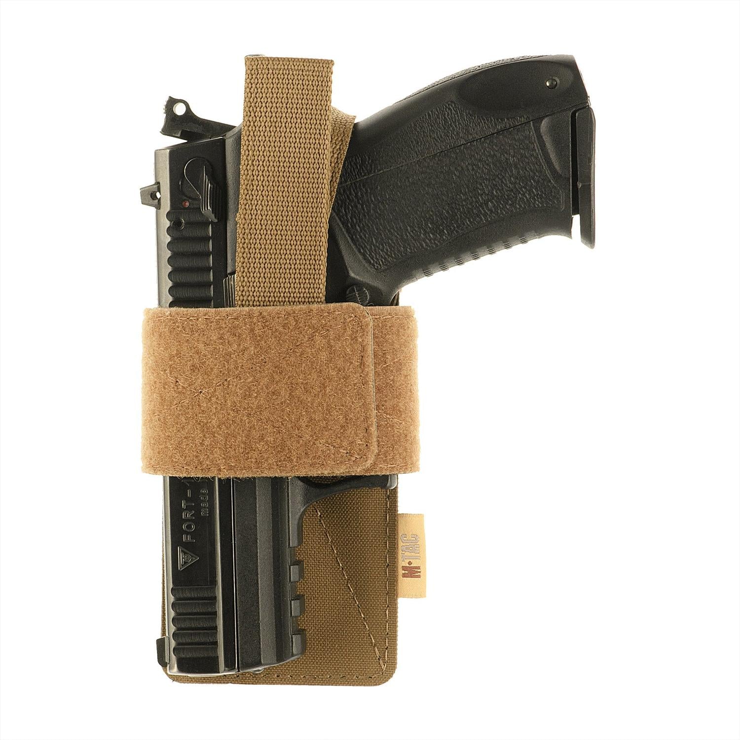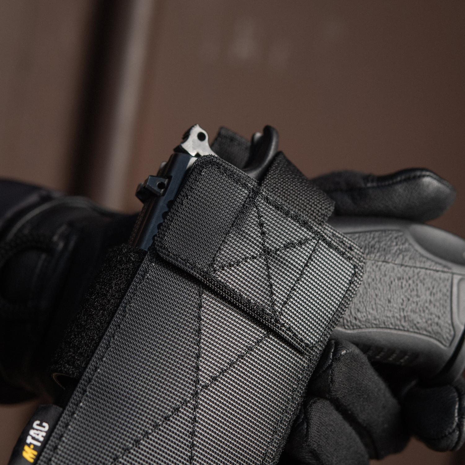 The holster-insert from the M-Tac brand is designed for concealed weapons carrying and is adjustable for most pistols. Designed for use with tactical bags and backpacks, that have a loop panel. The pistol in the holster is secured with an adjustable hook and loop fastener tape that wraps around the barrel near the trigger. This practical accessory allows you to quickly pull out the weapon at the right time and will become indispensable for those who want to carry a pistol with them without attracting unneeded attention.