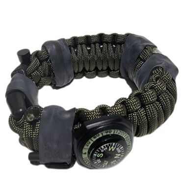 • Dimensions: Wrist-worn strap, 10–15 ft paracord (expanded capacity when unraveled)