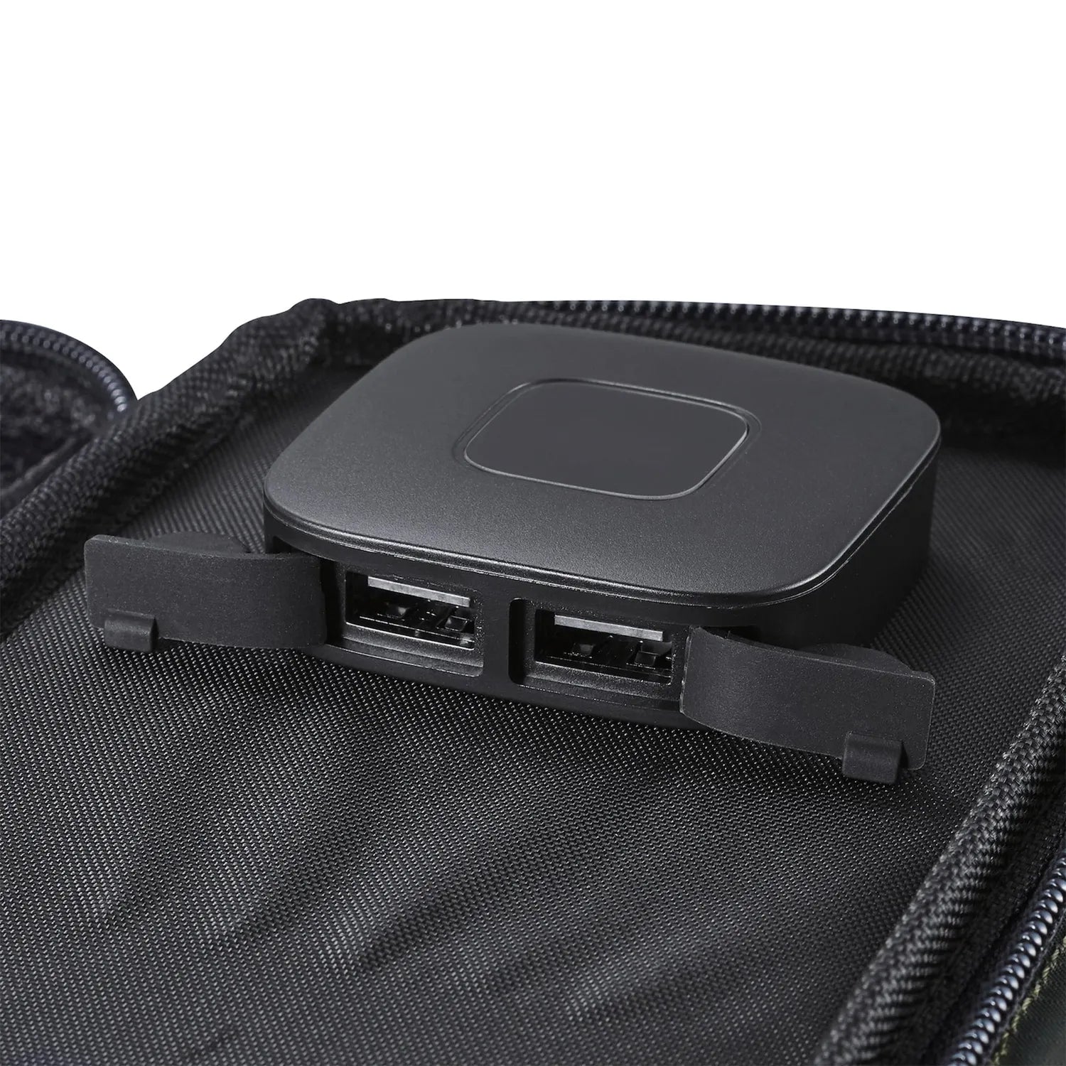 • Pack Smart & Organized – Two mesh storage pouches keep cables, adapters, or a smartphone secure during charging.