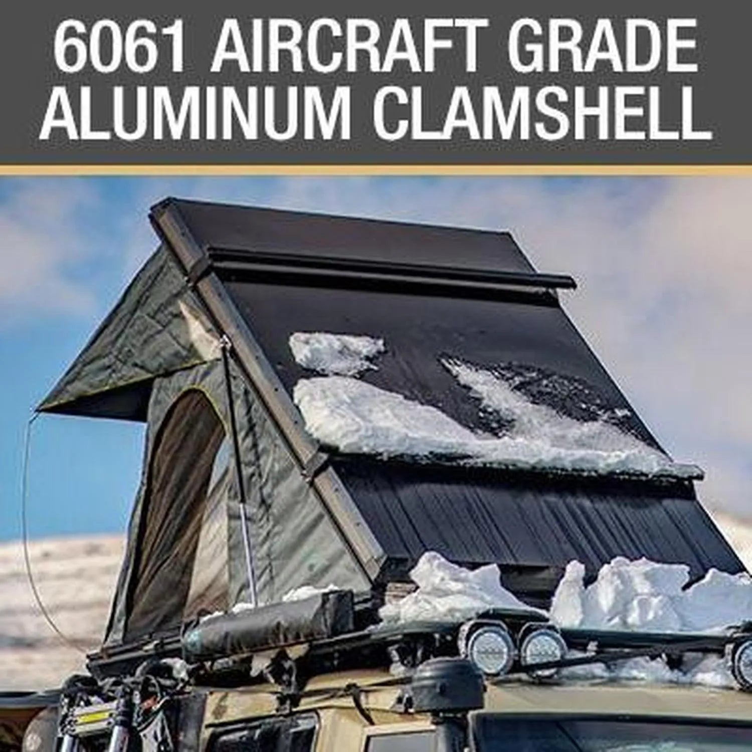 HD Mamba Clam Shell Aluminum Hard Shell Roof Top Tent, Grey Body & Green Trim