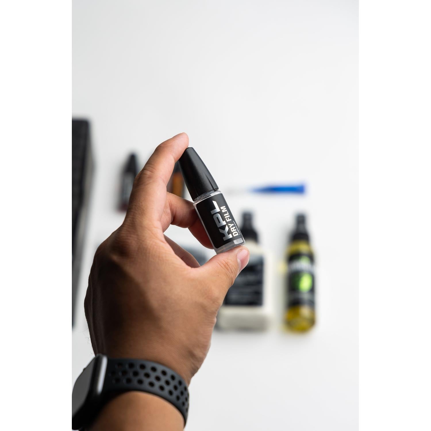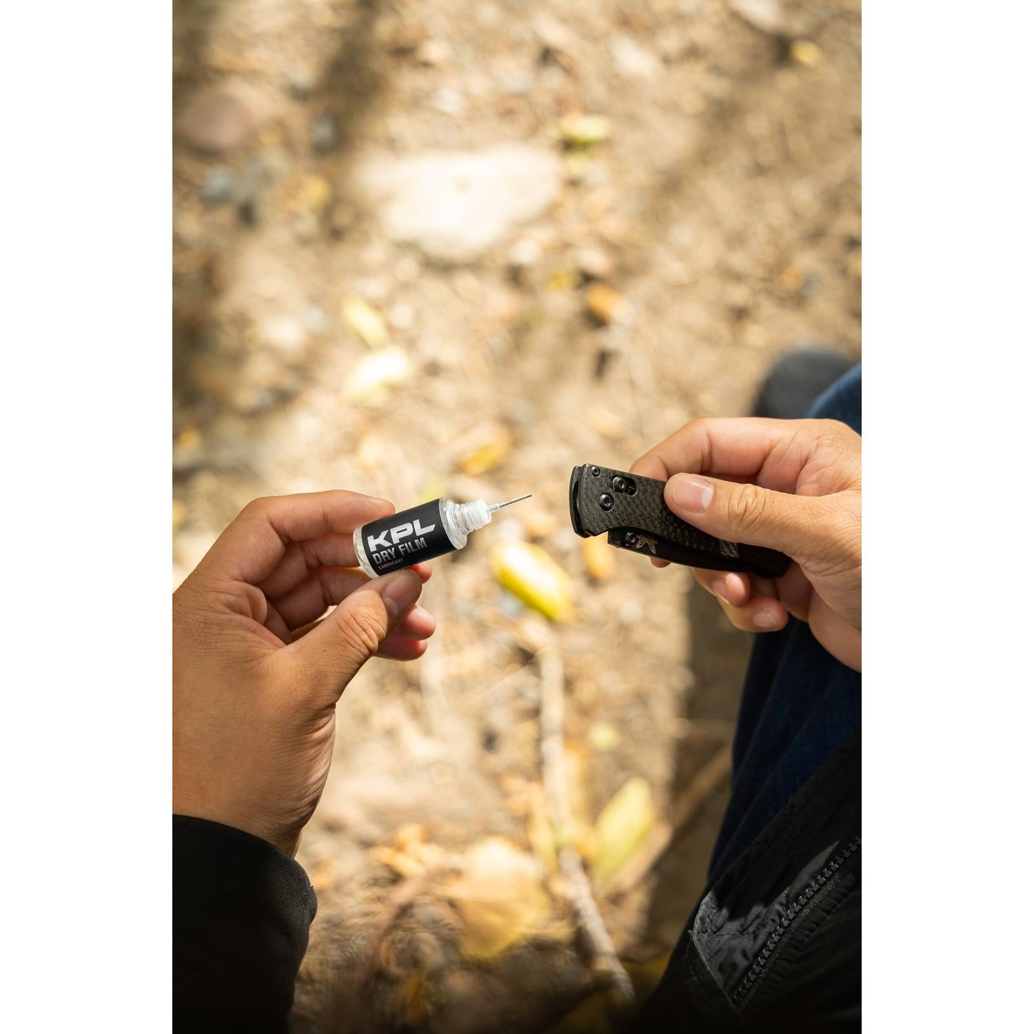 KPL Dry Film™ is the solution for knife owners who prefer running pivots dry to avoid dust, dirt, and lint buildup. Applied as a liquid, it flashes off in seconds, leaving behind a pure fluorinated dry film layer that repels particulates and provides ultra-low friction. Unlike waxy or oily formulas, Dry Film won’t attract debris, keeping your pivots clean and smooth even in harsh environments.