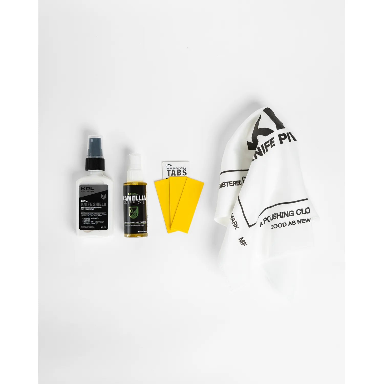 The KPL Rust Proof Bundle delivers a full-spectrum solution to protect your knives from corrosion both in daily use and long-term storage. With a protective spray, food-safe preservation oil, premium cleaning cloth, and long-lasting rust prevention tabs, this kit ensures your blades stay rust-free, clean, and ready for action.