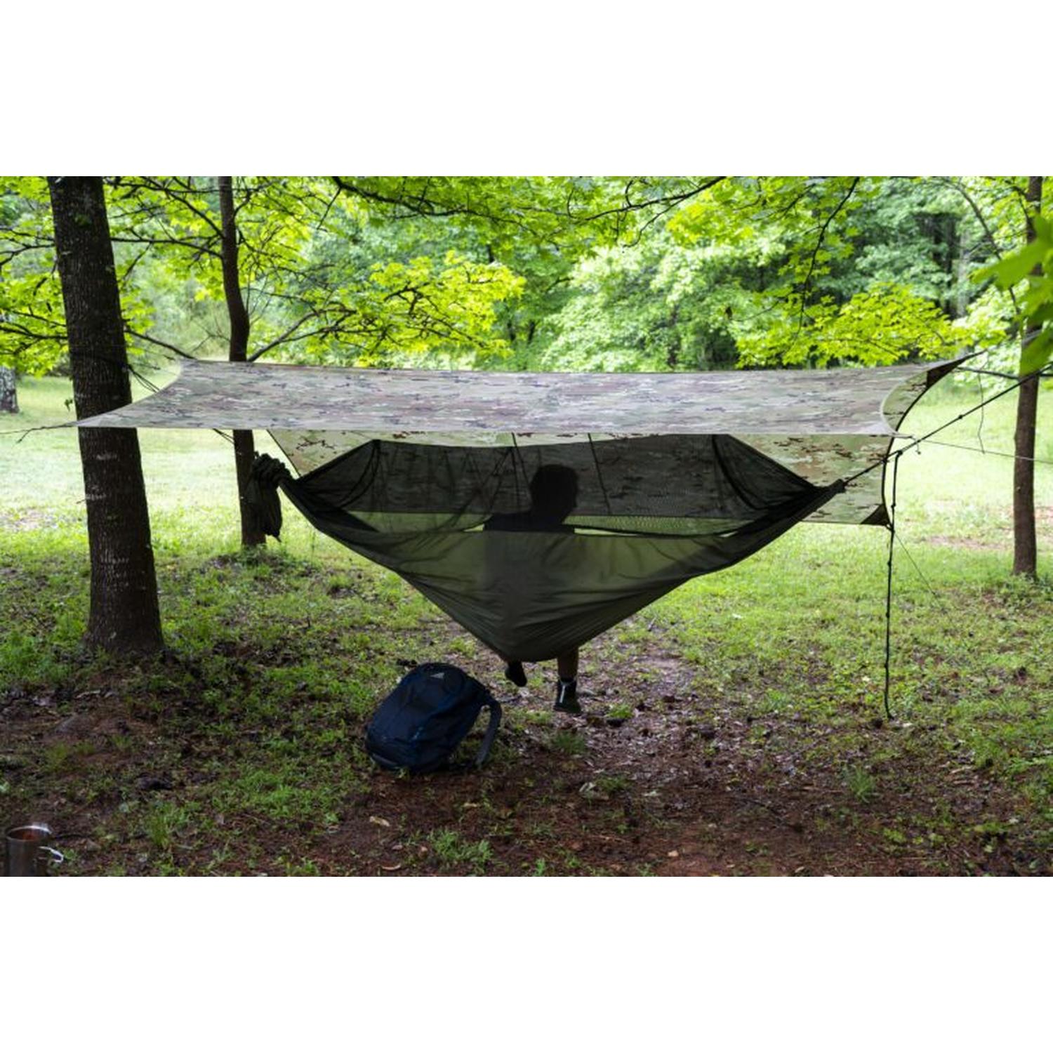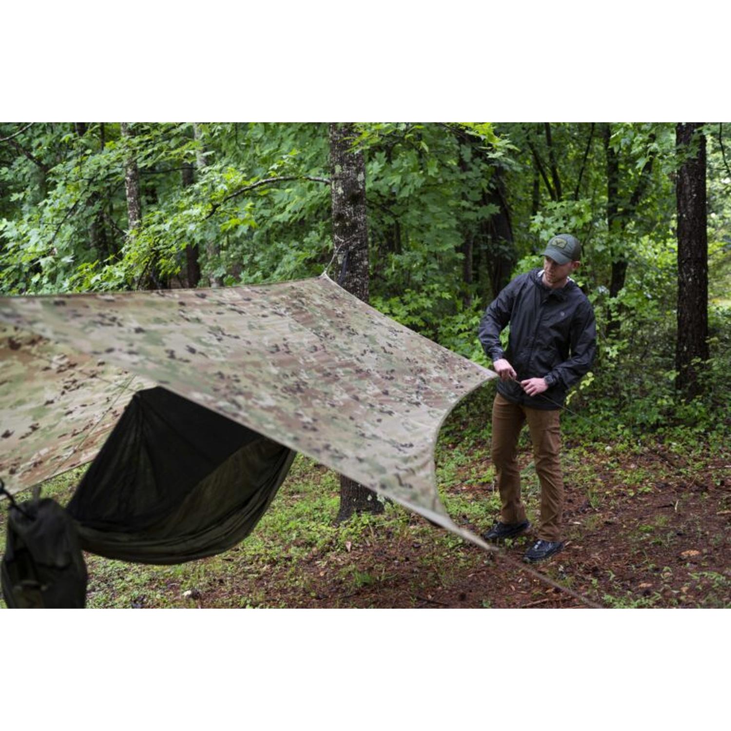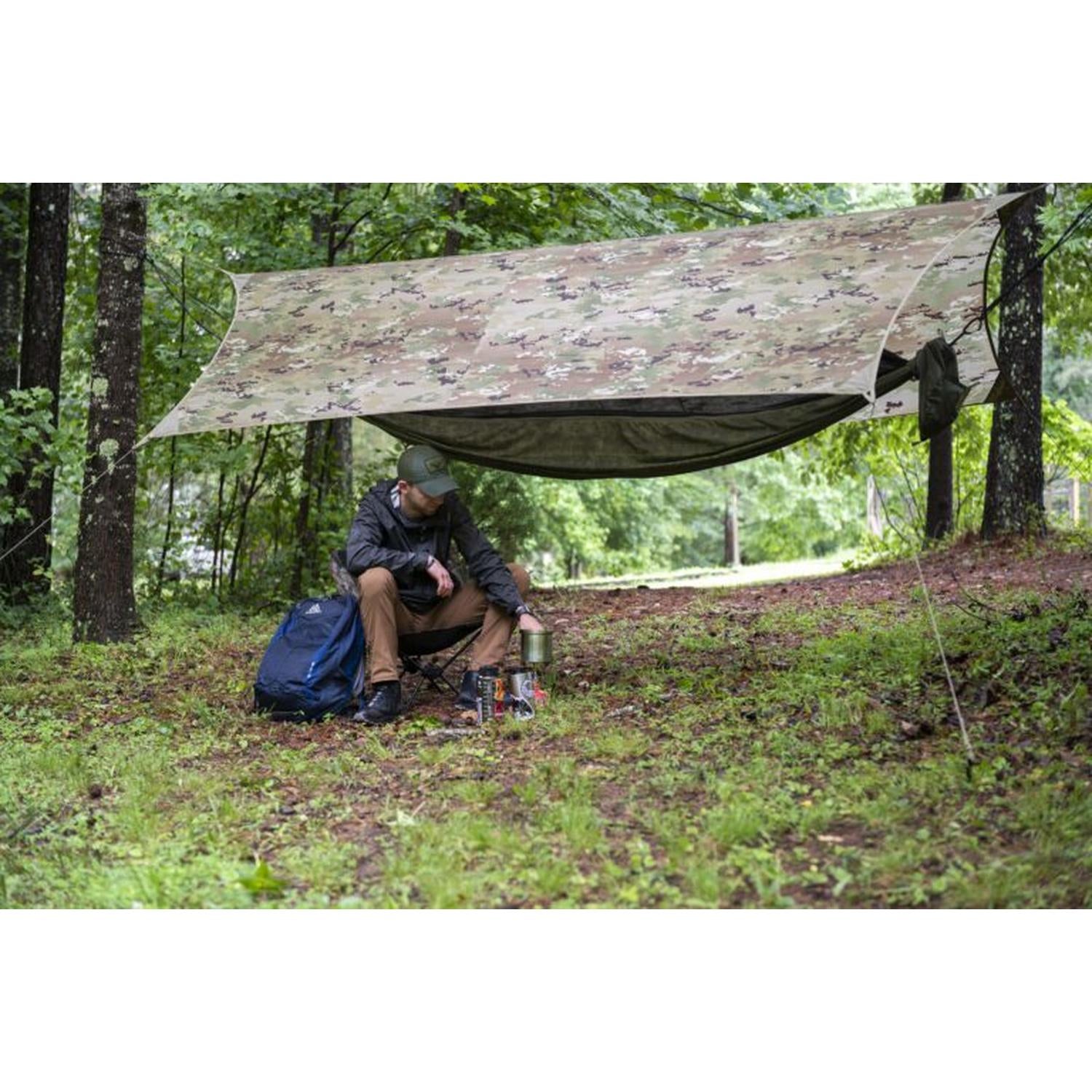 Modular Shelter: Use hammock + tarp together or deploy the tarp alone as a two-person field tarp