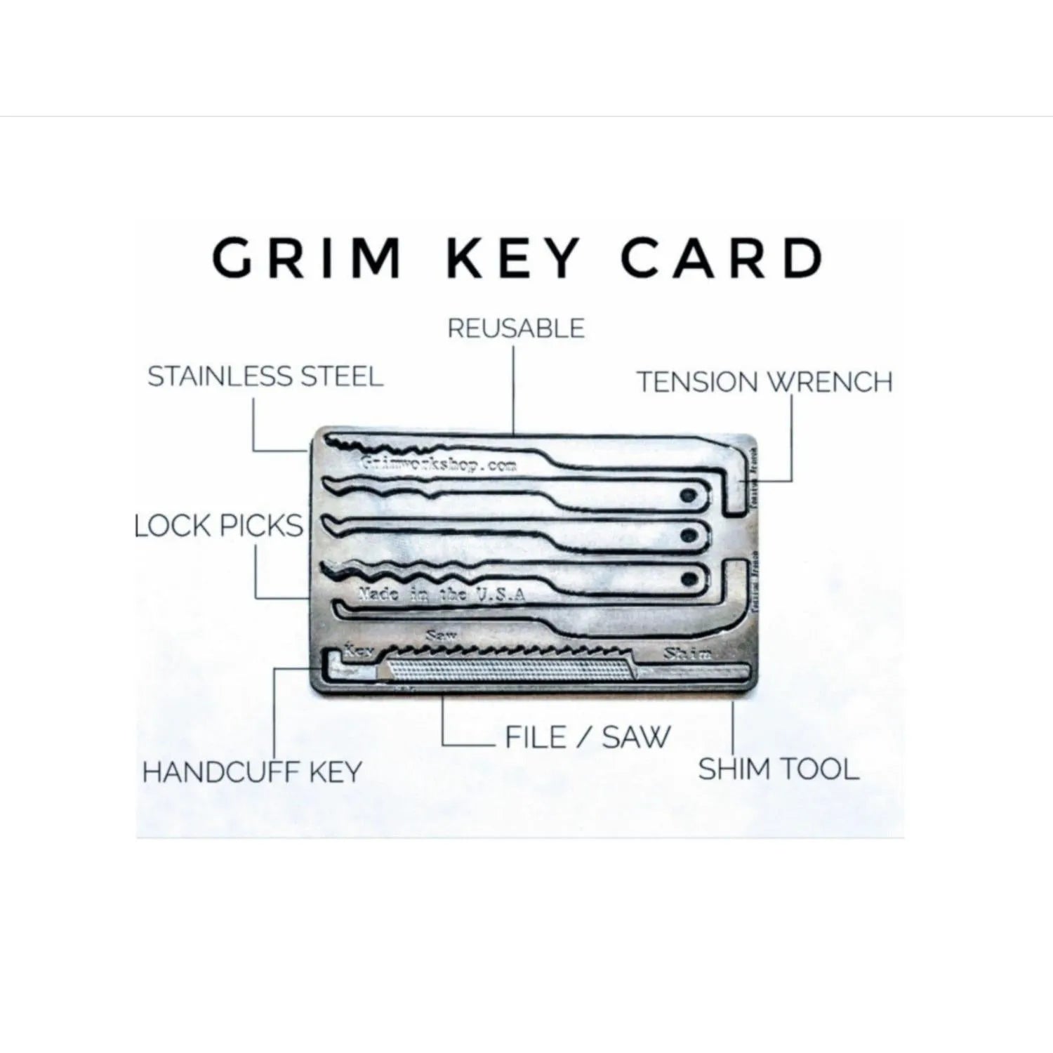 From locked gear bins to emergency escape scenarios, the Grim Key Card gives you access, control, and capability—without taking up space in your kit.