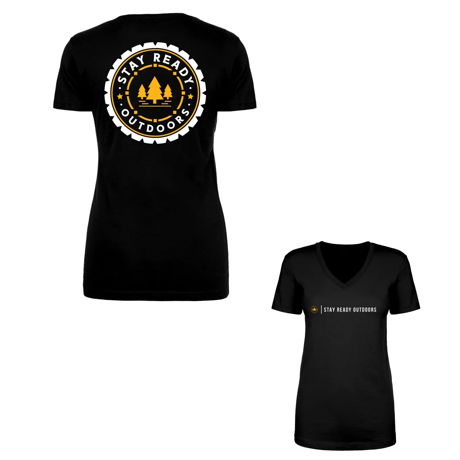 Stay Ready Outdoors – Women’s V-Neck Logo Tee