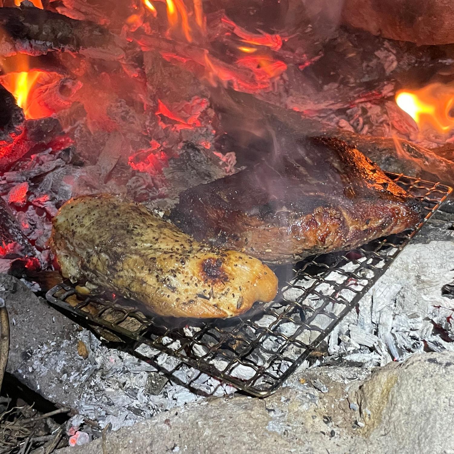 Near Zero lightweight backpacking mesh grill. Made of food-grade 304 stainless steel. Ideal for cooking fish, chicken, or steak over the fire. Includes lightweight nylon zipper carrying bag.