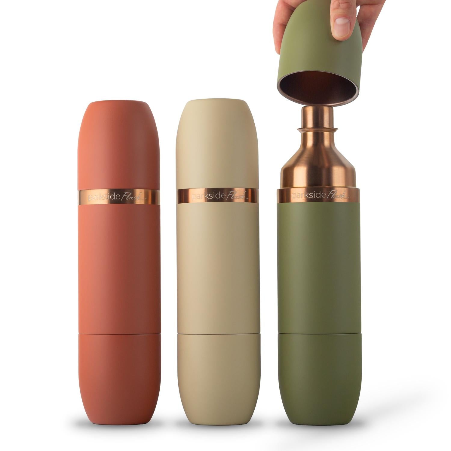 The Parkside Flask™ Mojave Edition is a rare, limited-release drop—dressed in a Sun-Washed Bronze finish and three exclusive desert-born hues: Sage, Sand, and Terracotta. Built on the same award-winning design as the original Parkside Flask™, this 750ml all-in-one wine set pays tribute to the rugged beauty of the desert with timeless craftsmanship and functional elegance.