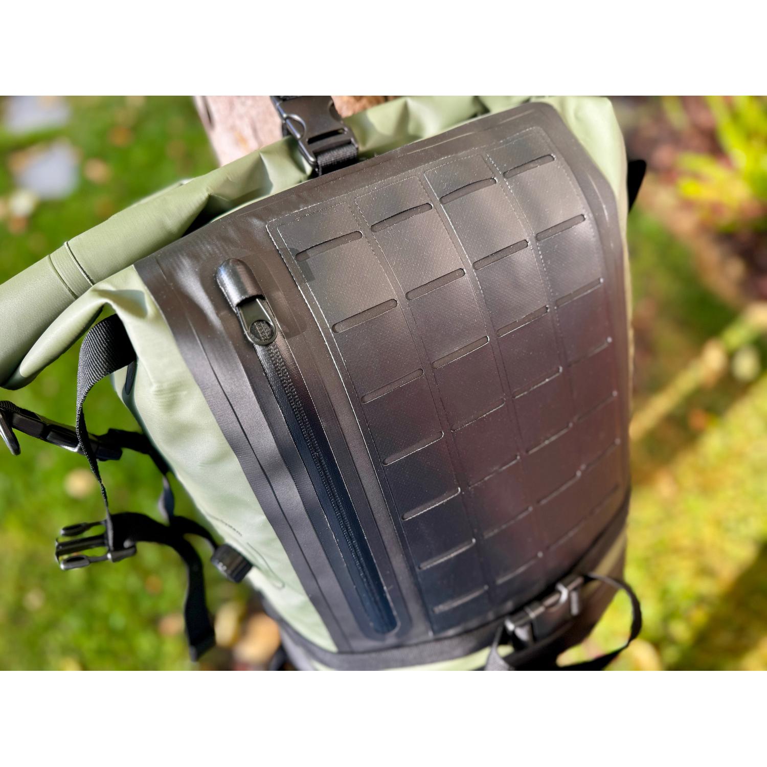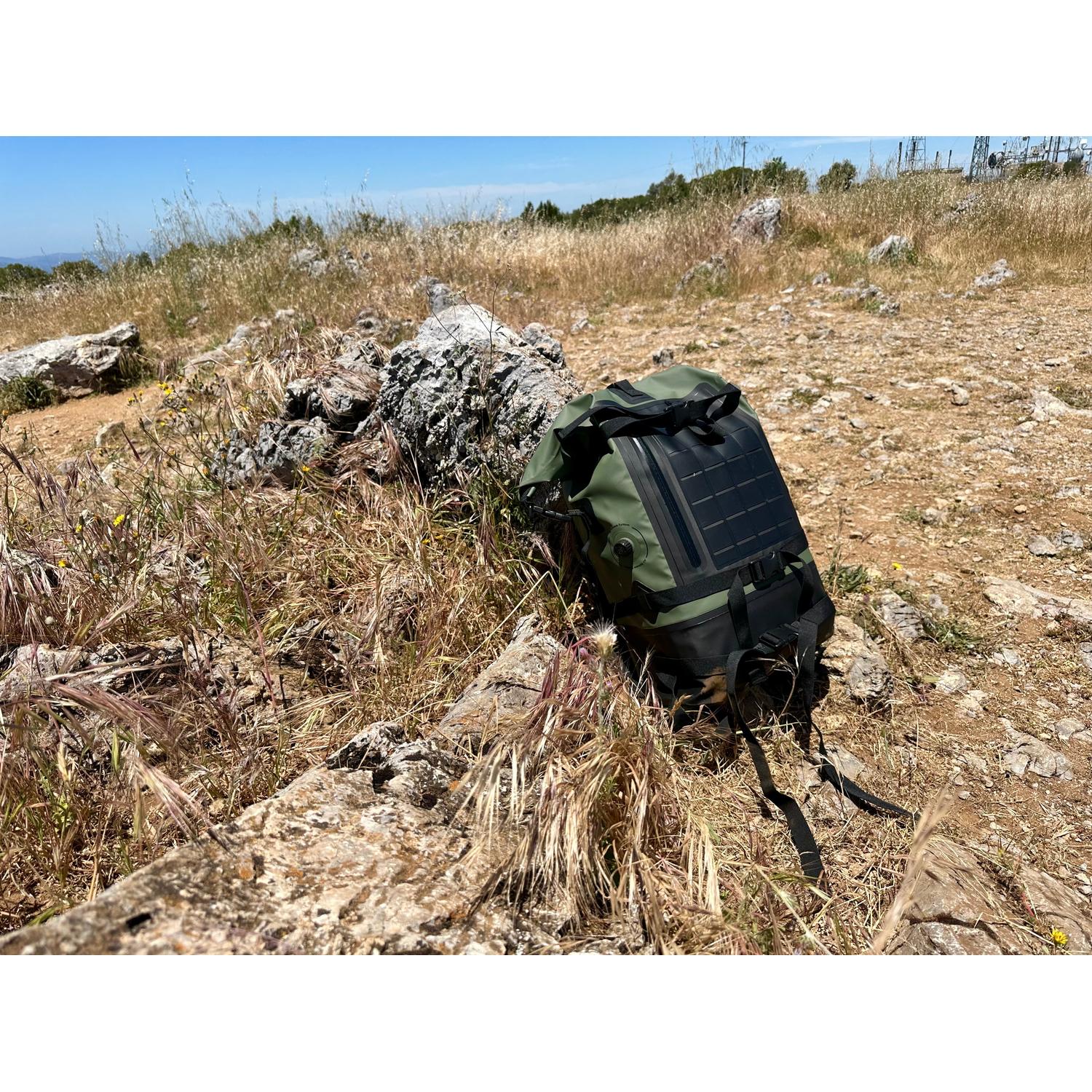 • Features: Waterproof main compartment, MOLLE panel, reinforced bottom, isolated water-resistant front pouch, adjustable sternum strap