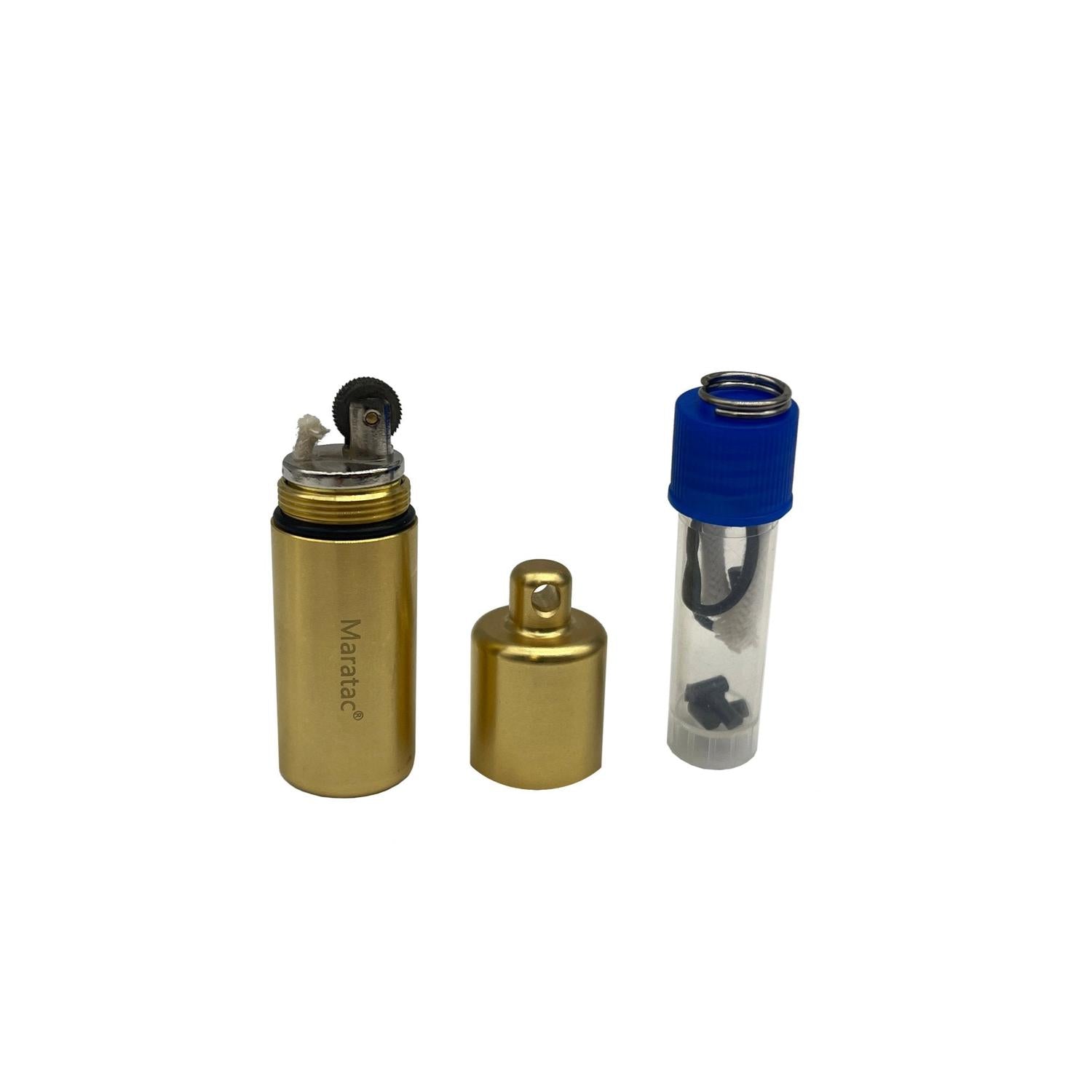 Complete Support Kit – Comes with spare flints, O-rings, wick, and a titanium 10mm split ring for immediate deployment