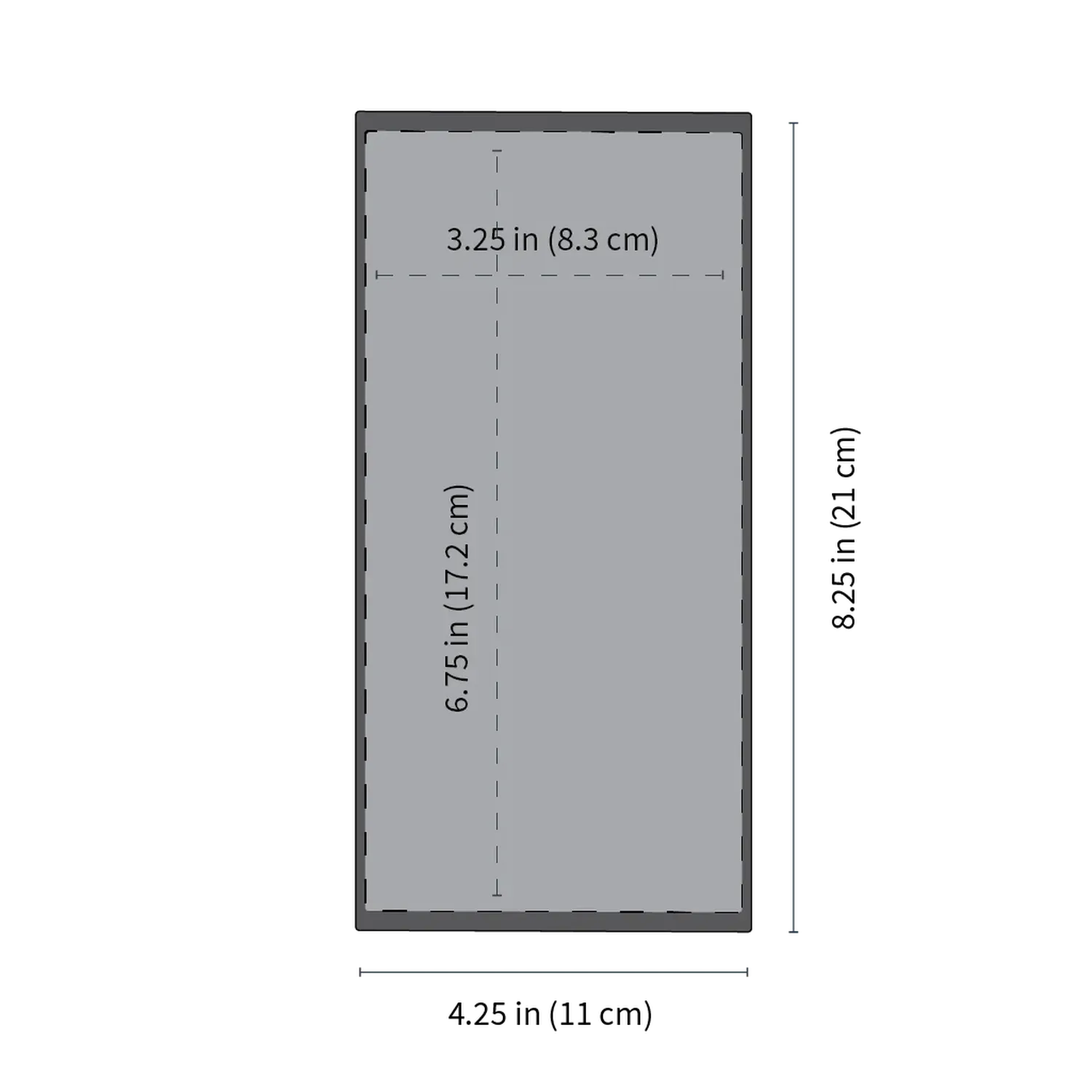• Max Device Size: 6.75" x 3.25" x 0.5" (17.2 x 8.3 x 1.25 cm)