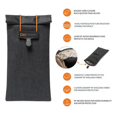 The GoDark® Faraday Phone Bag bundle delivers professional-grade RF shielding trusted by military and security teams worldwide. Each pouch blocks GPS, Wi-Fi, Bluetooth, cellular (4G/5G), and even EMP, ensuring your device stays dark when operational security matters most. With a rugged roll-top closure and field-tested shielding fabric, these bags are built for travel, go-bags, or everyday protection against digital threats.