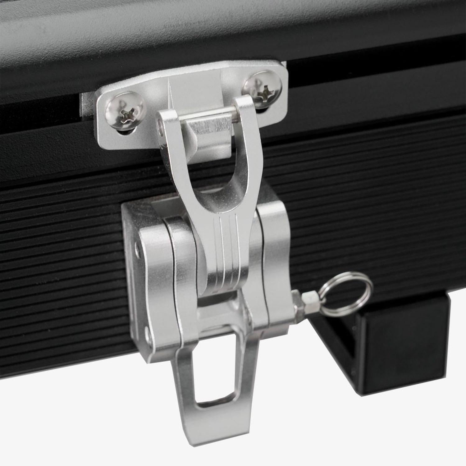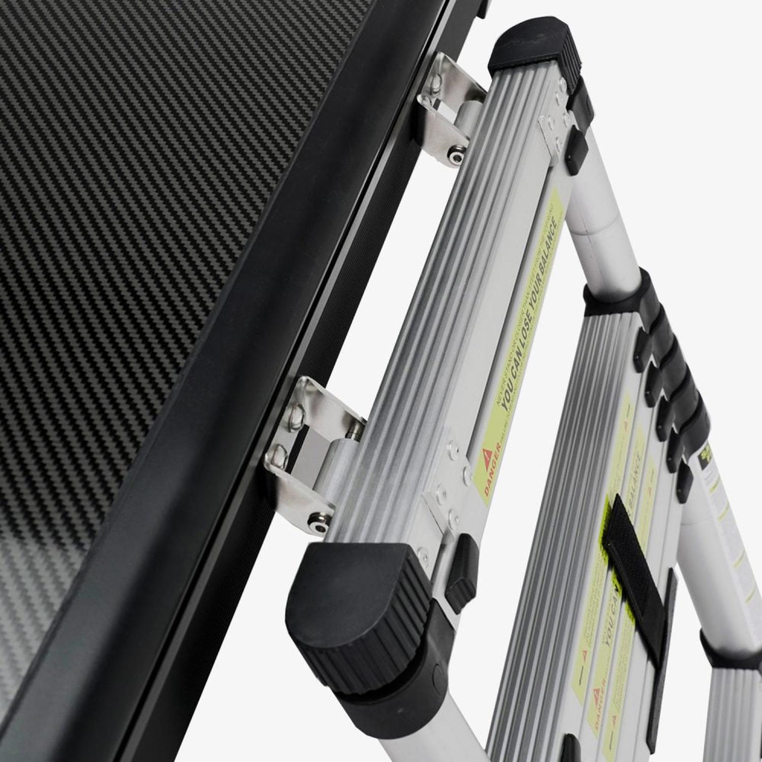 Easy setup with billet-aluminum latches and telescopic ladder.