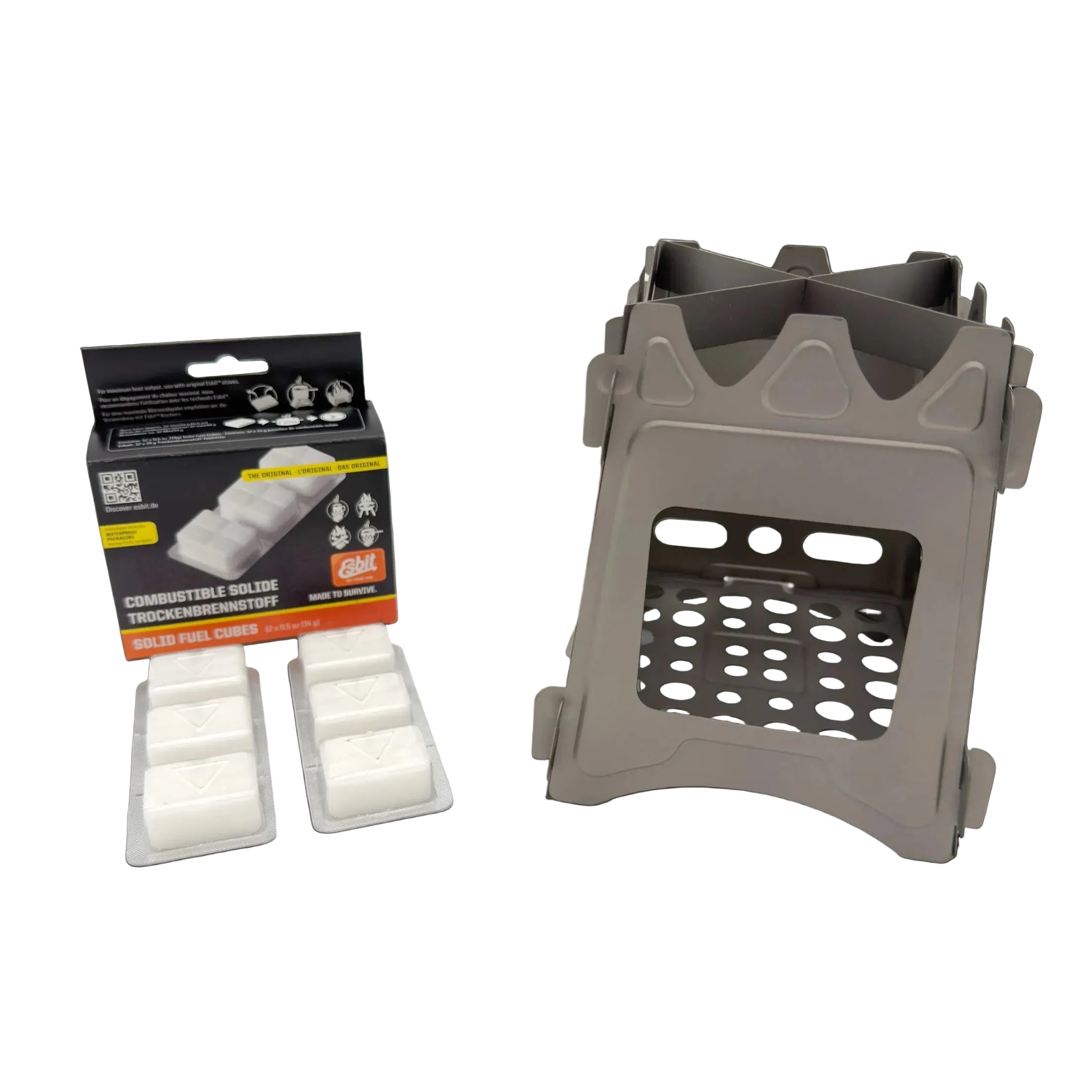 - Esbit fuel tablets (6-pack) – Solid fuel for reliable ignition of wet tinder/kindling