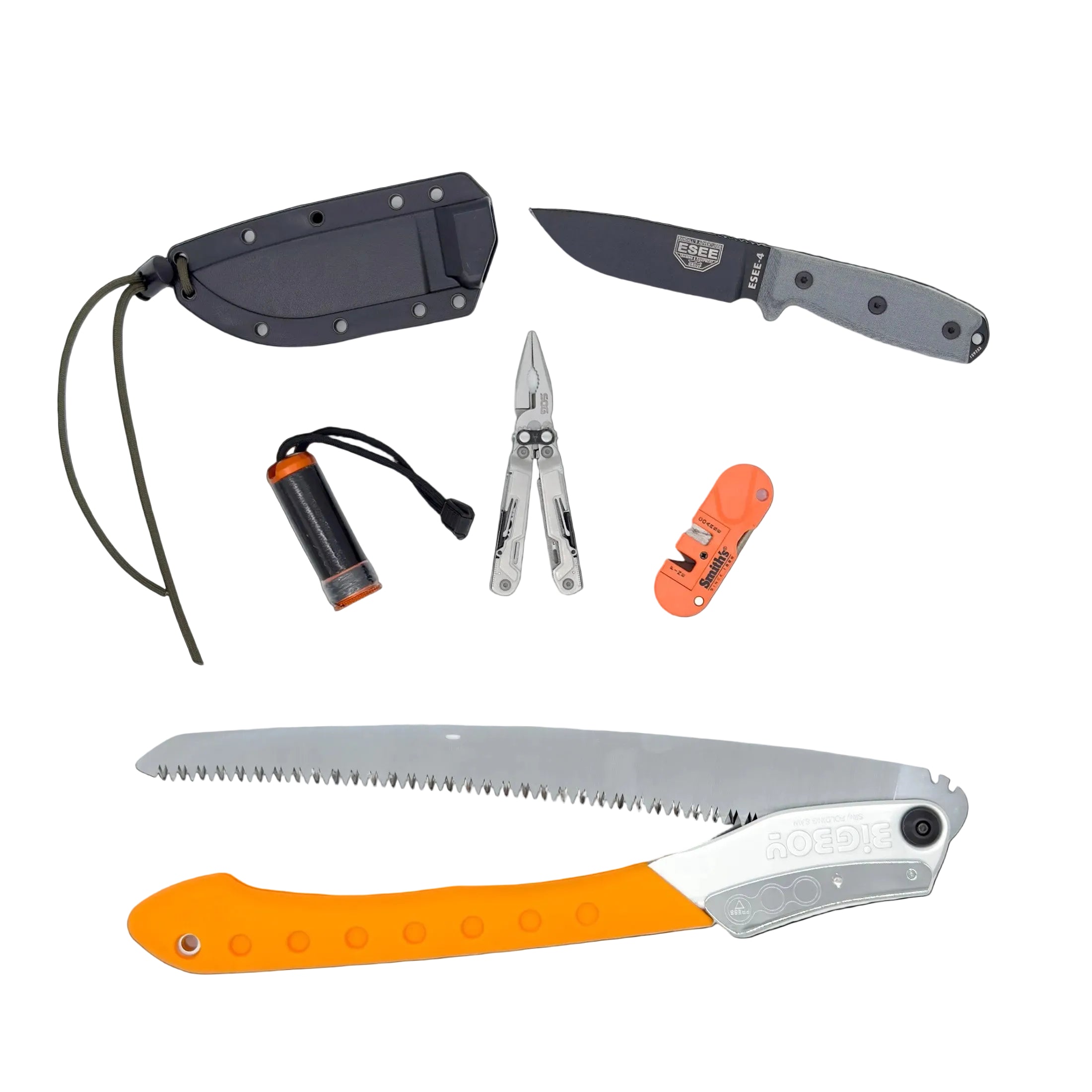 - Multi-tool, knife, saw, and repair assets for cutting, maintenance, cordage work, and field durability