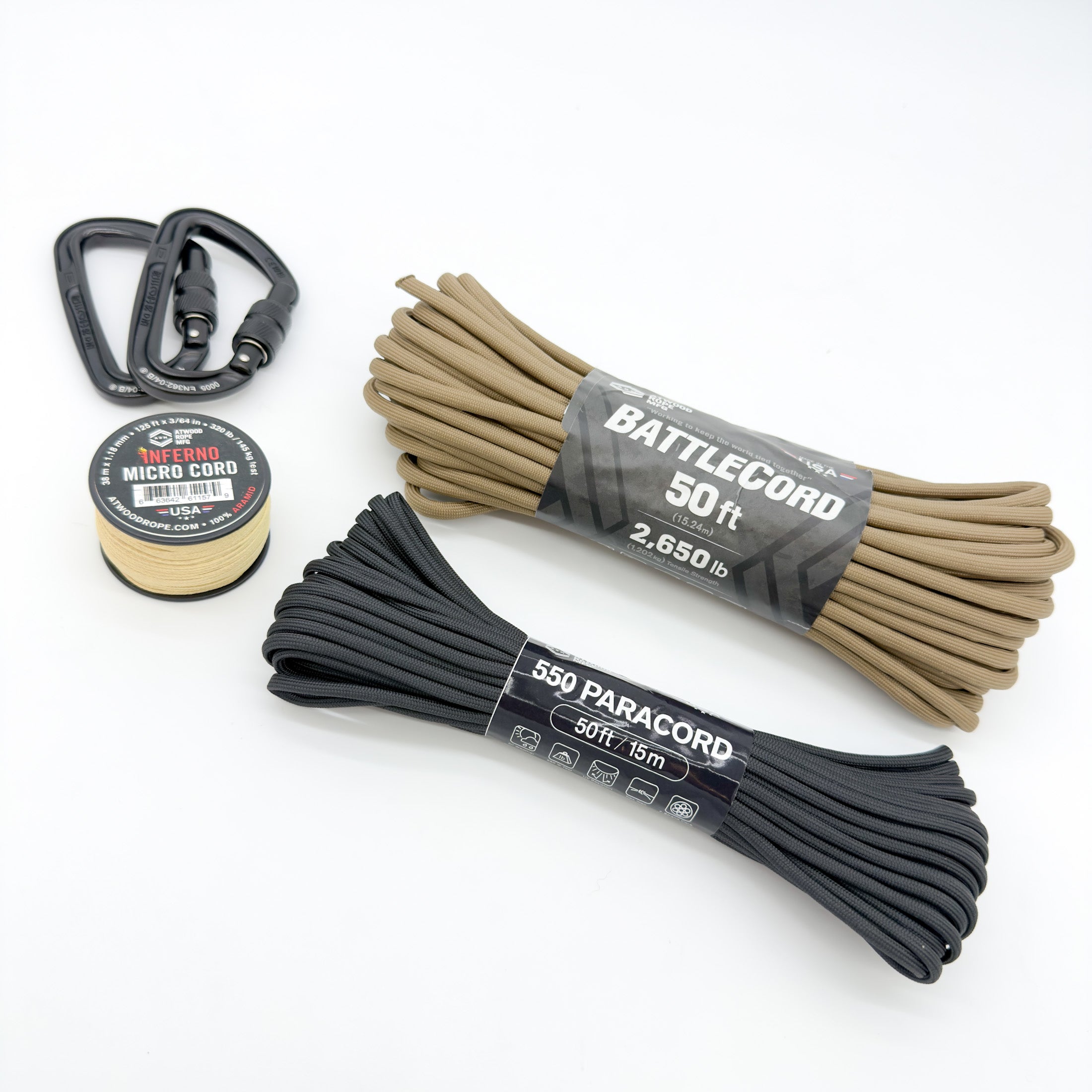- Atwood 550 Paracord (50 ft), black – General-purpose paracord for rigging and lashing.