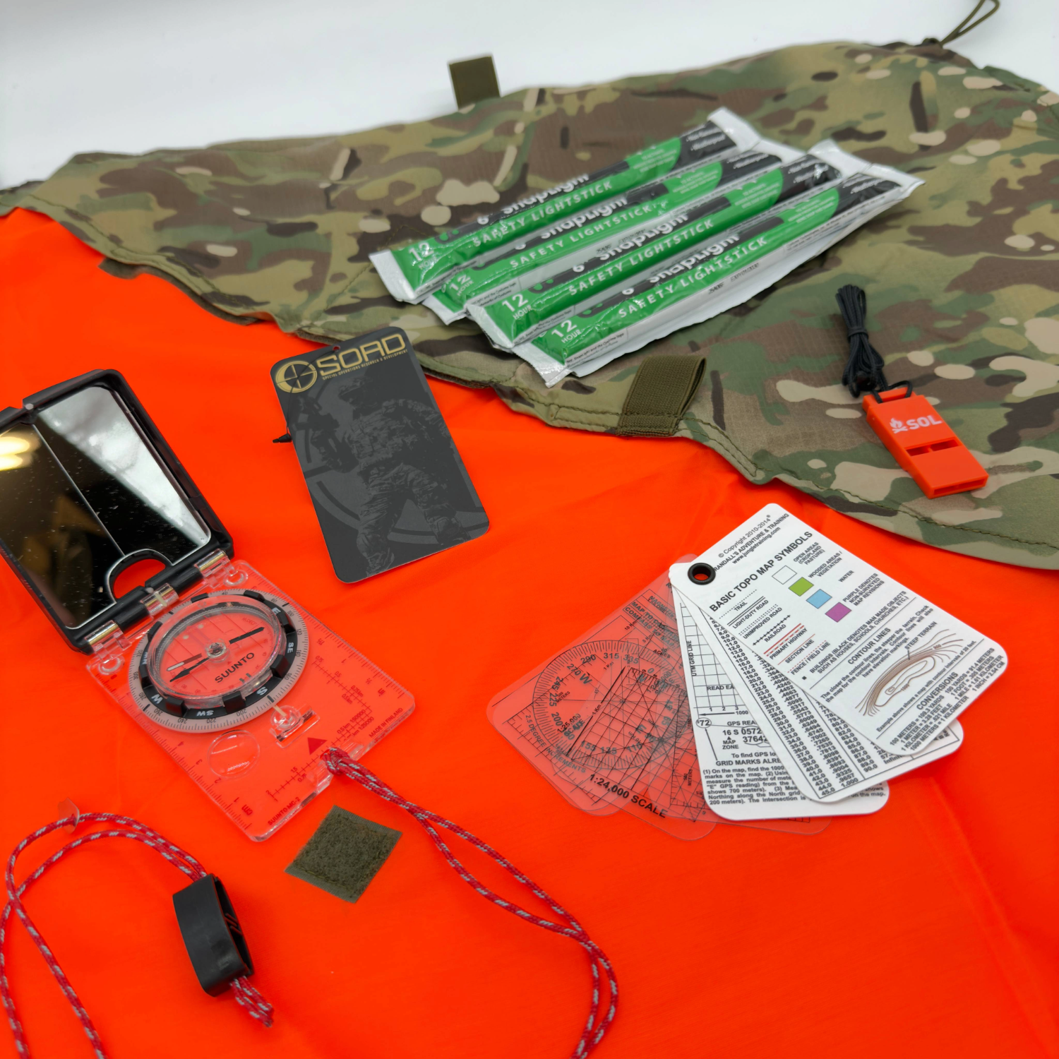 - Navigation and signaling coverage with compass, reference cards, mirror, visual panel, and chemlight suite