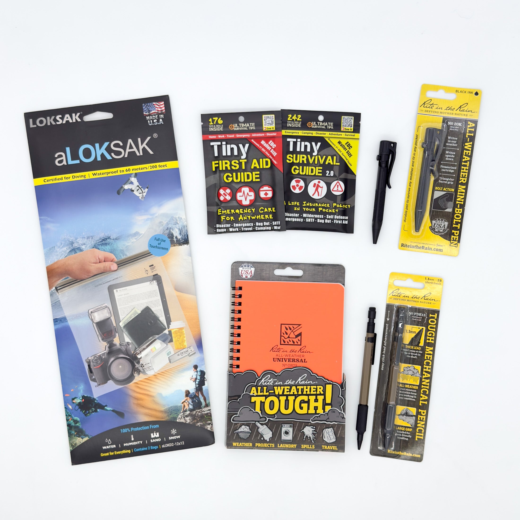 - Aloksak Bags 12” × 12” (2 pack) – Waterproof storage bags for documents and sensitive items.