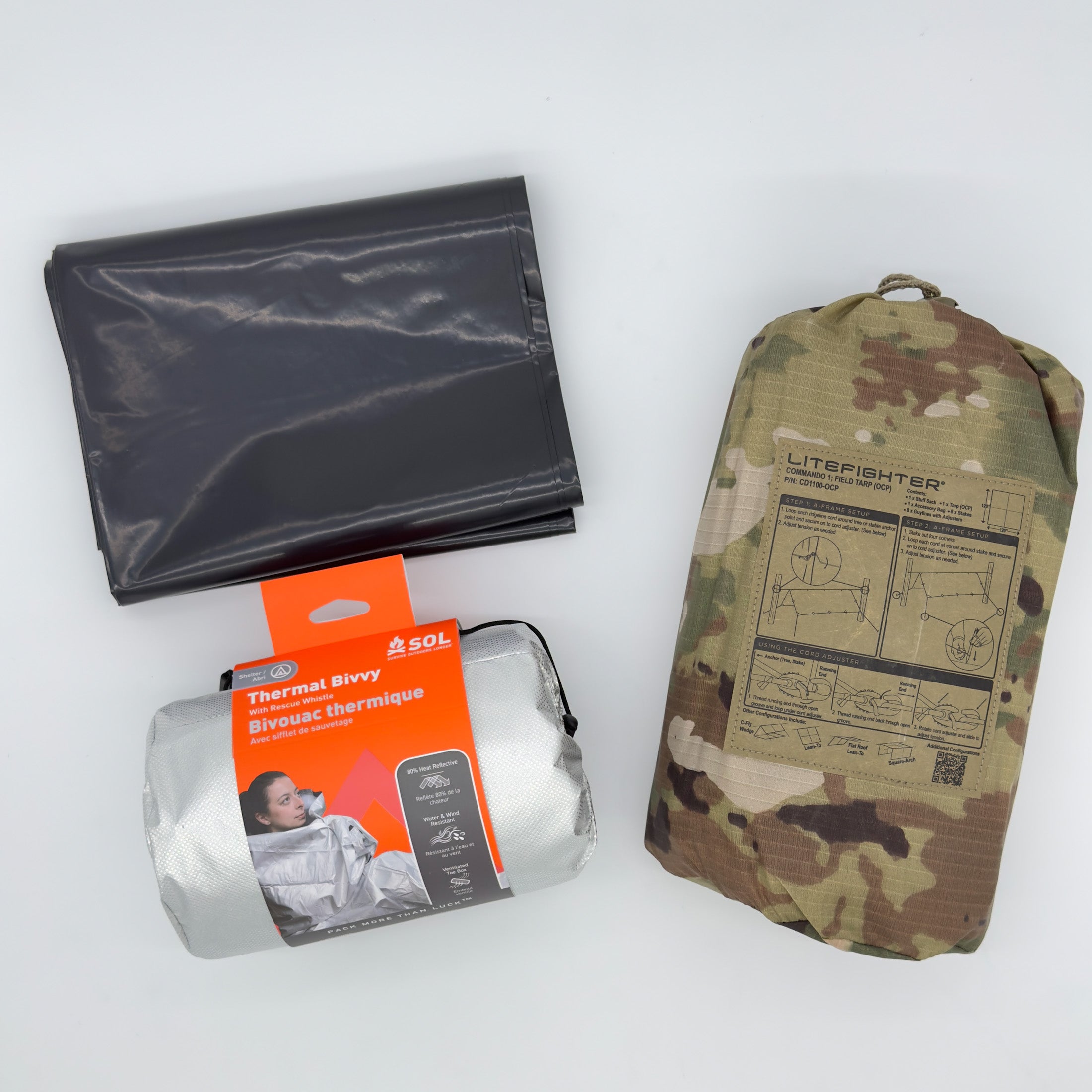 - Shelter: LiteFighter Commando Tarp + Customer-Selected SOL Bivvy