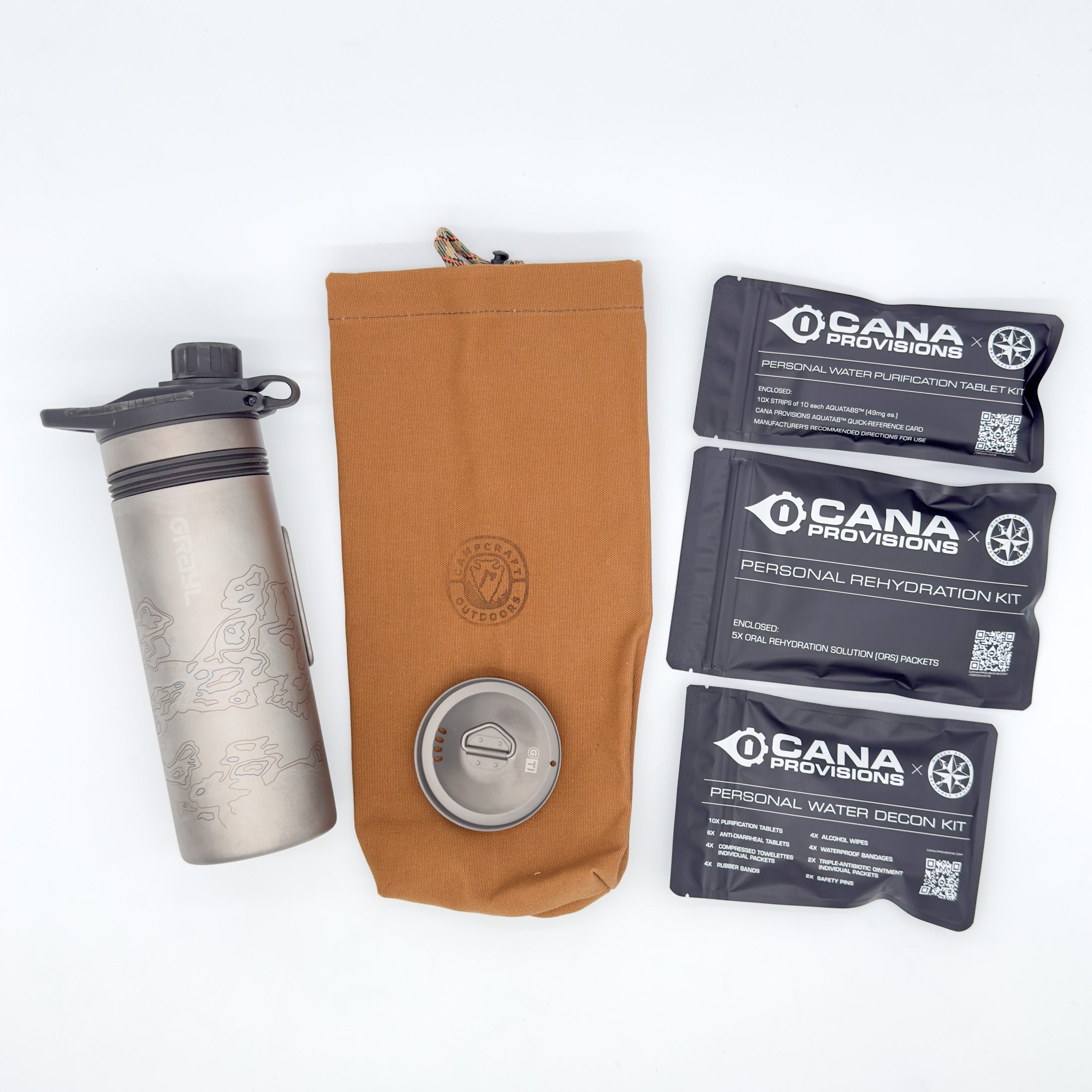 - Cana Provisions Personal Water Decon Combo Kit – Three-tier water safety package combining decon support, bulk purification tablets, and rehydration support in one kit.