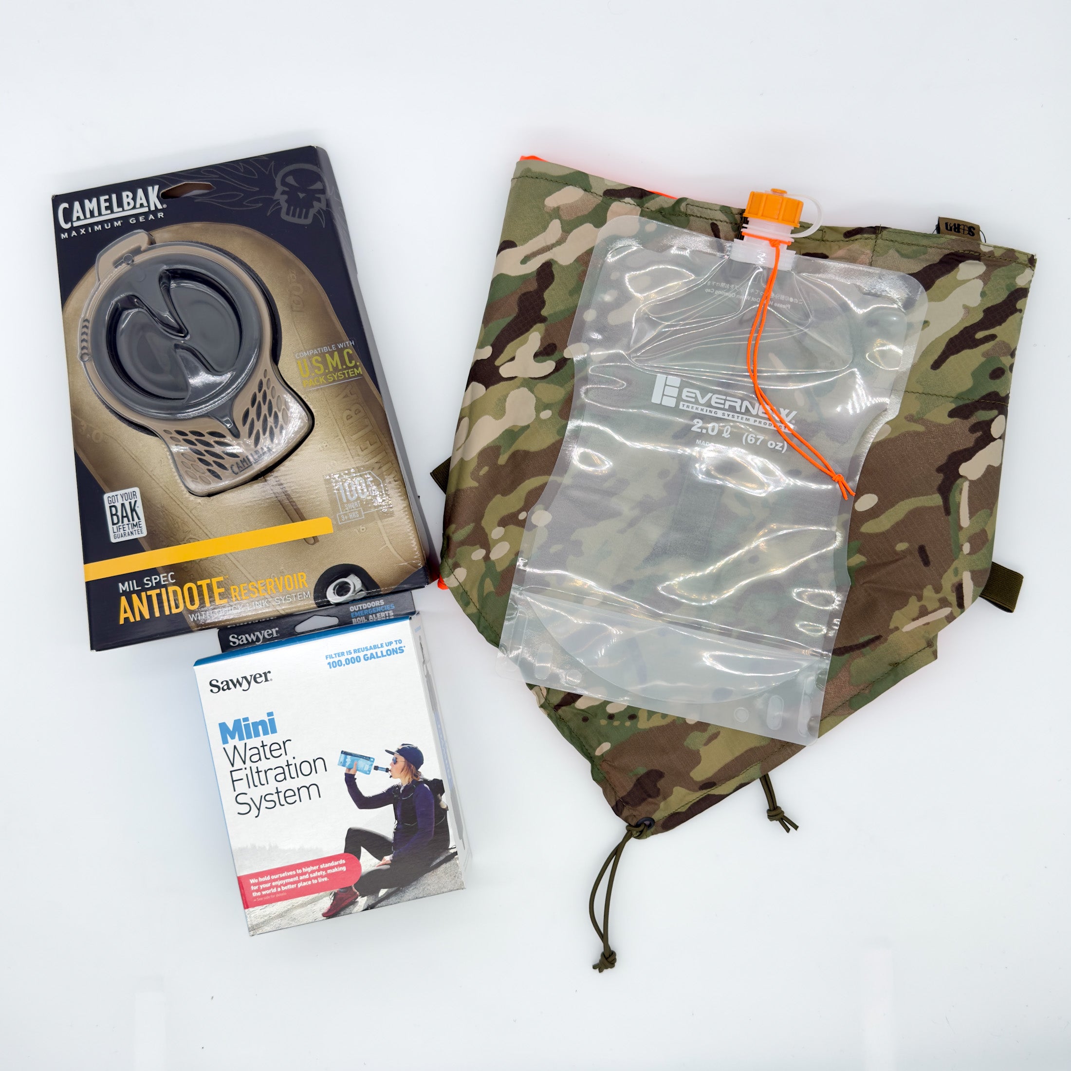 - Sawyer Mini Filter – Compact squeeze-style microfilter for secondary water processing and redundancy.