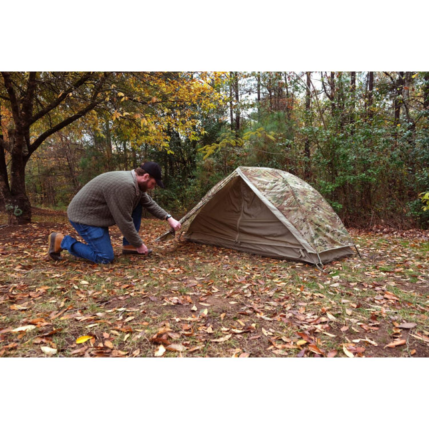 Durable Build: Waterproof groundsheet, ripstop canopy, and MultiCam® rainfly