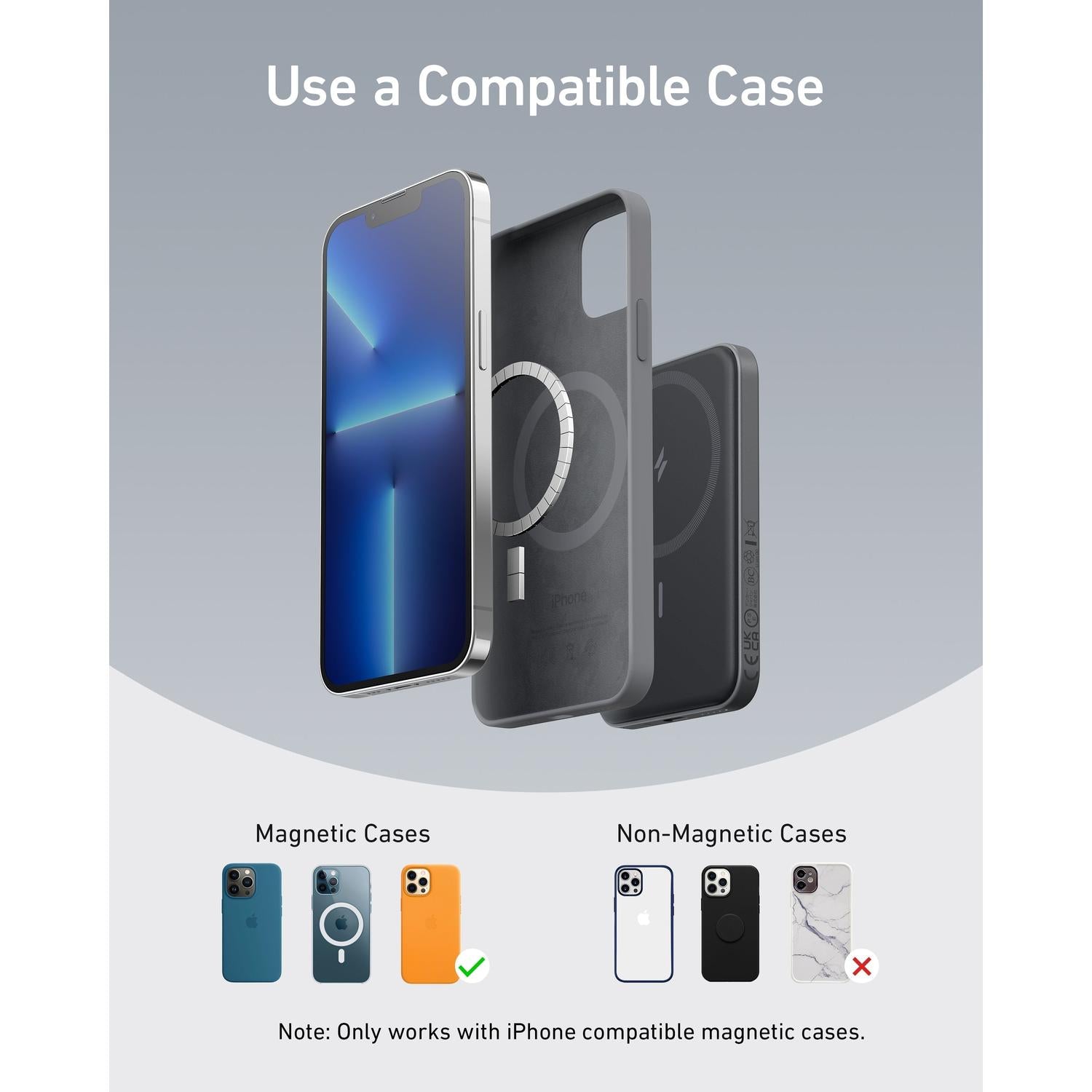 Ultra-strong magnets hold securely to compatible iPhones during use