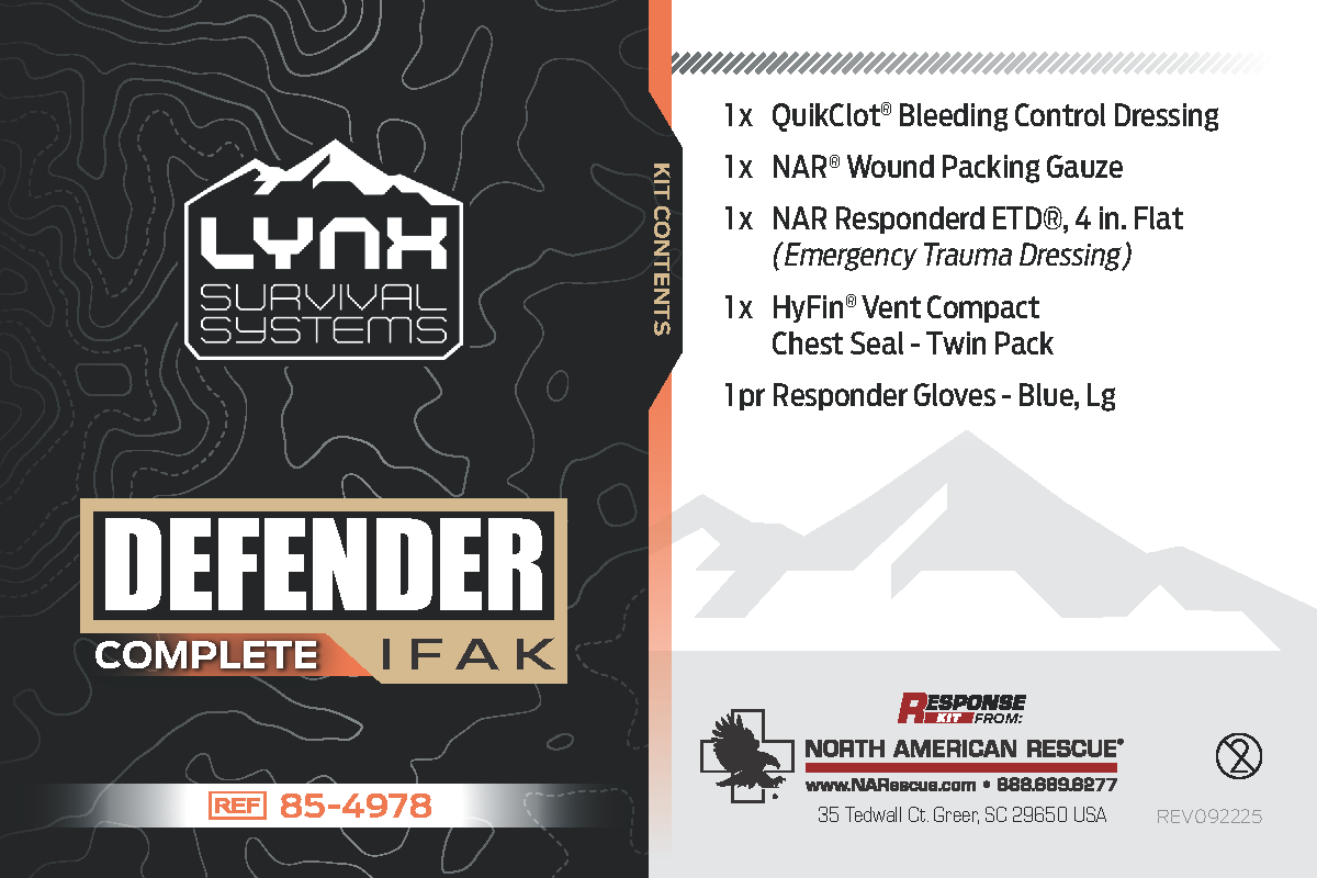 A: The Defender IFAK uses only North American Rescue components, vacuum-sealed for durability and compactness, ensuring true field-grade reliability in an EDC form.