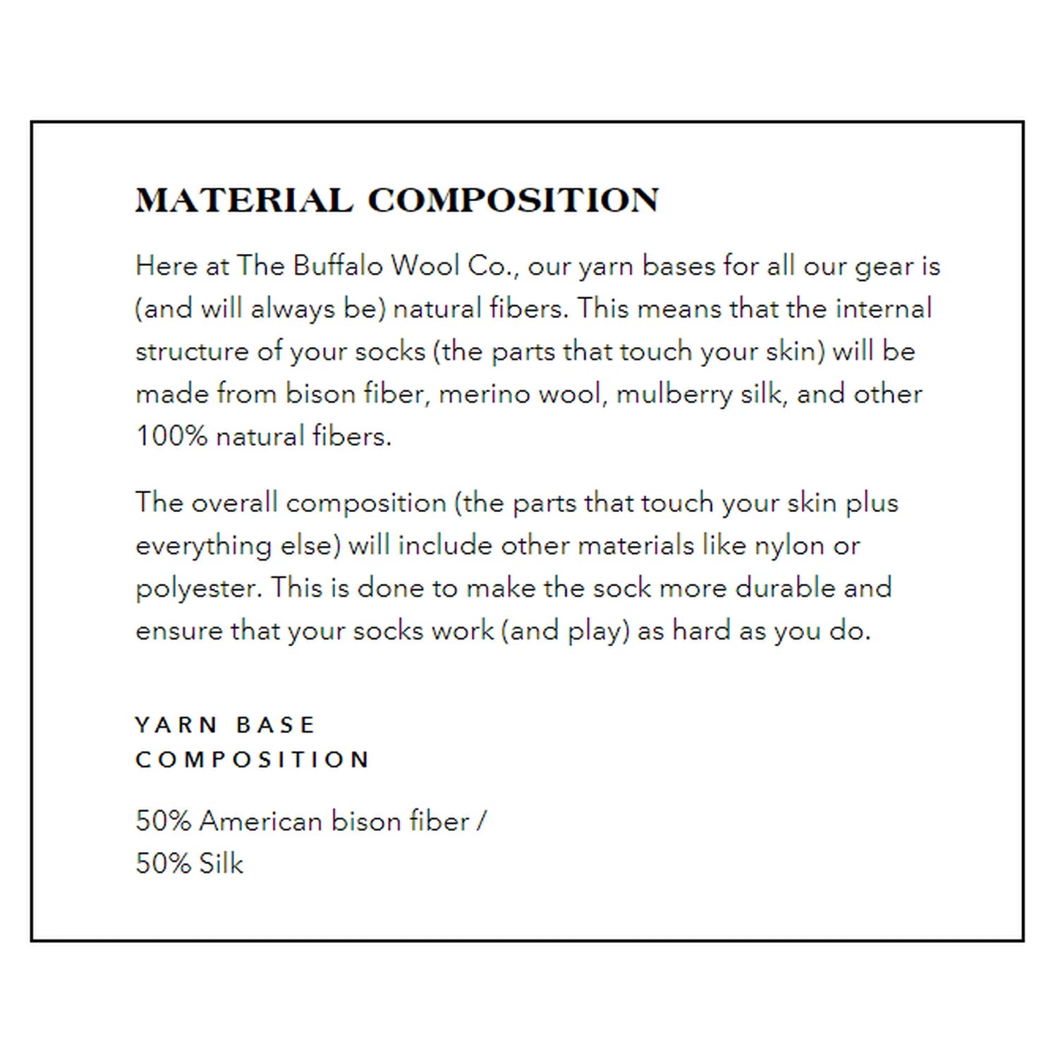 • Bison Fiber Warmth – Naturally insulates even when wet and resists odor buildup.