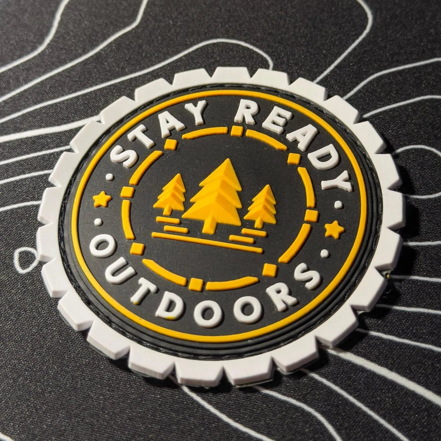 Our classic Stay Ready Outdoors patch is made from premium PVC and has the hook side of hook and loop on the back. 3" round size is perfect for hats, bags, or just collecting.